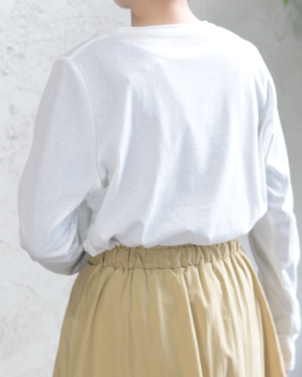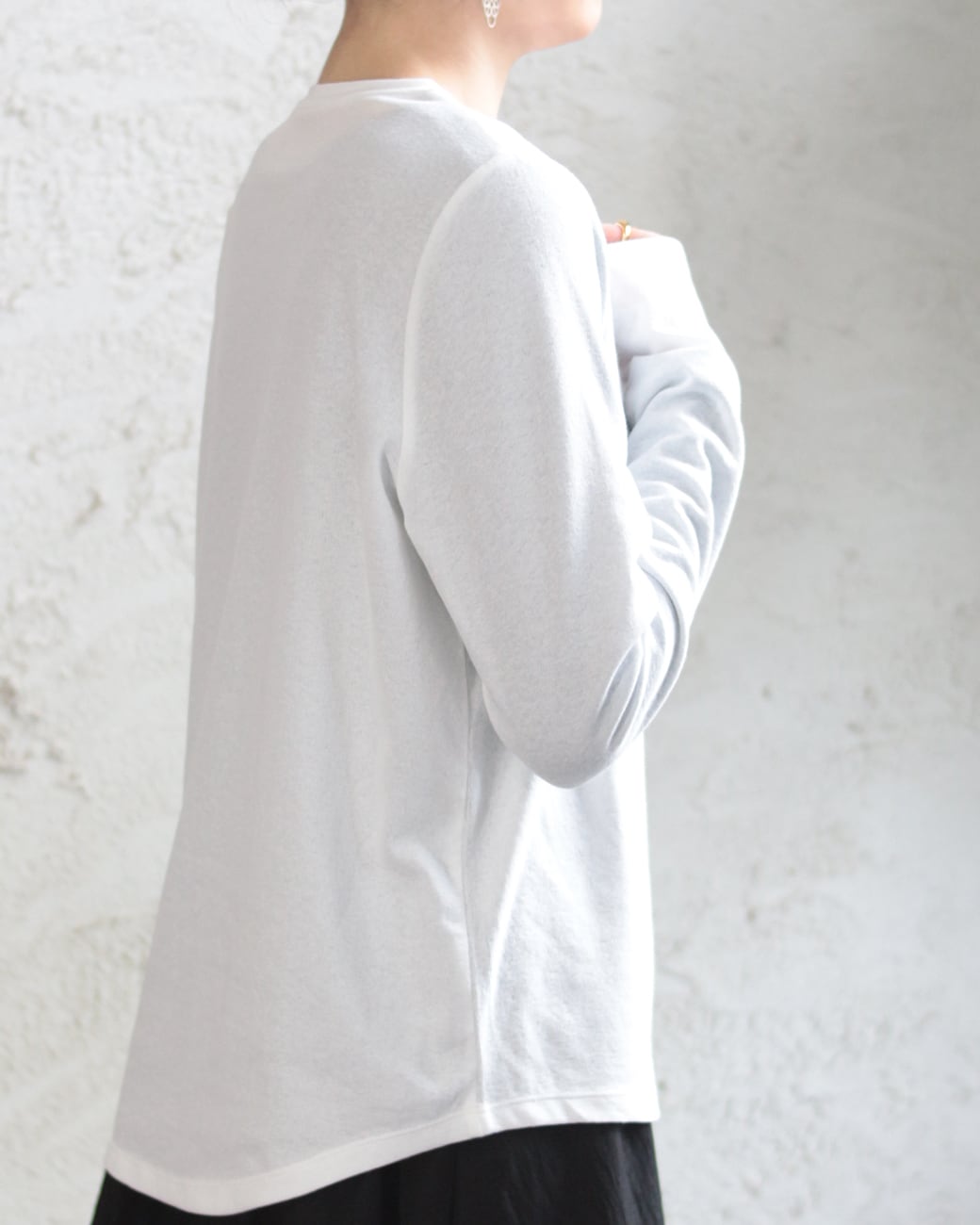 トレンドの深いVネックアイテムや、ヘンリーネックと合わせて着たいロンT。