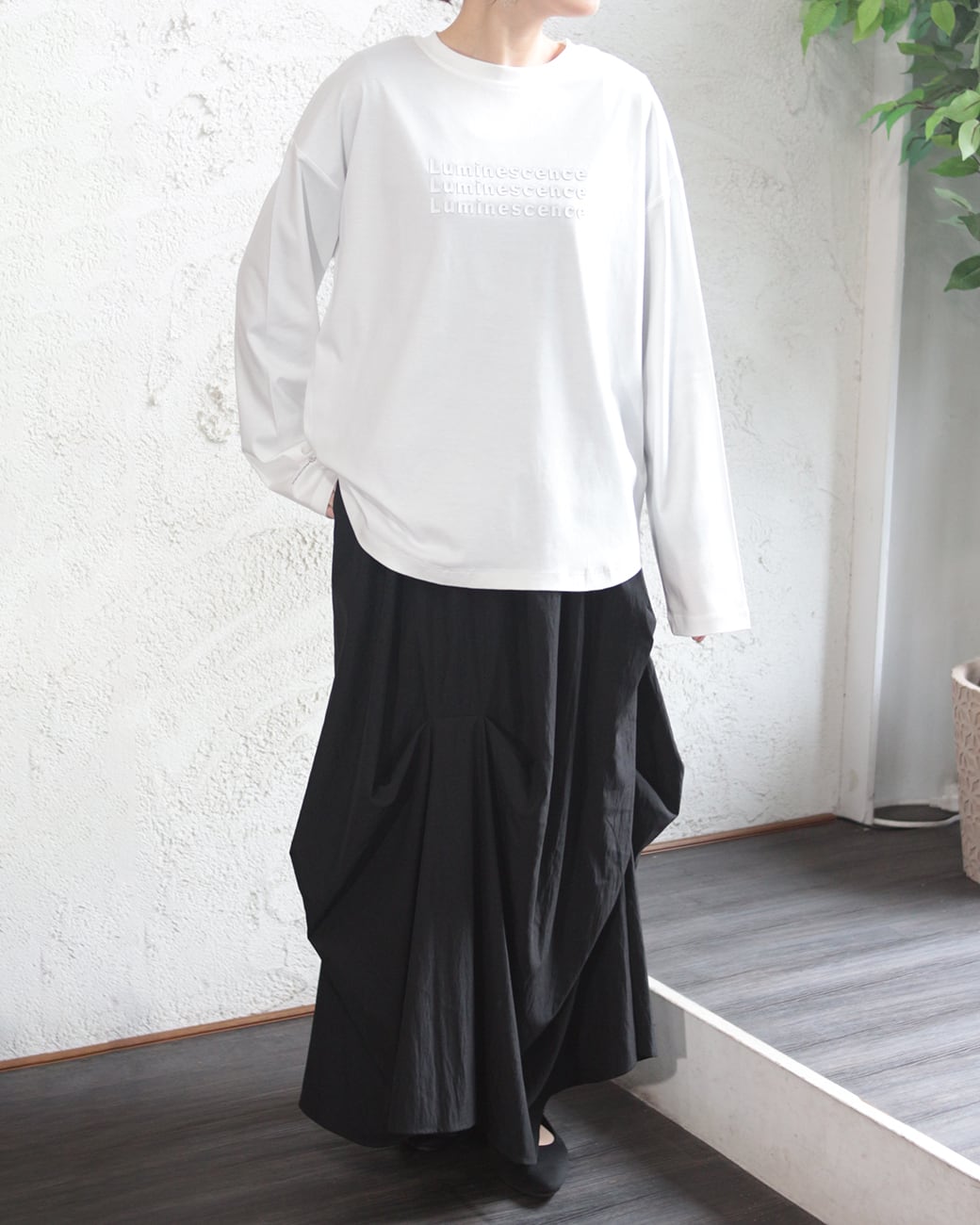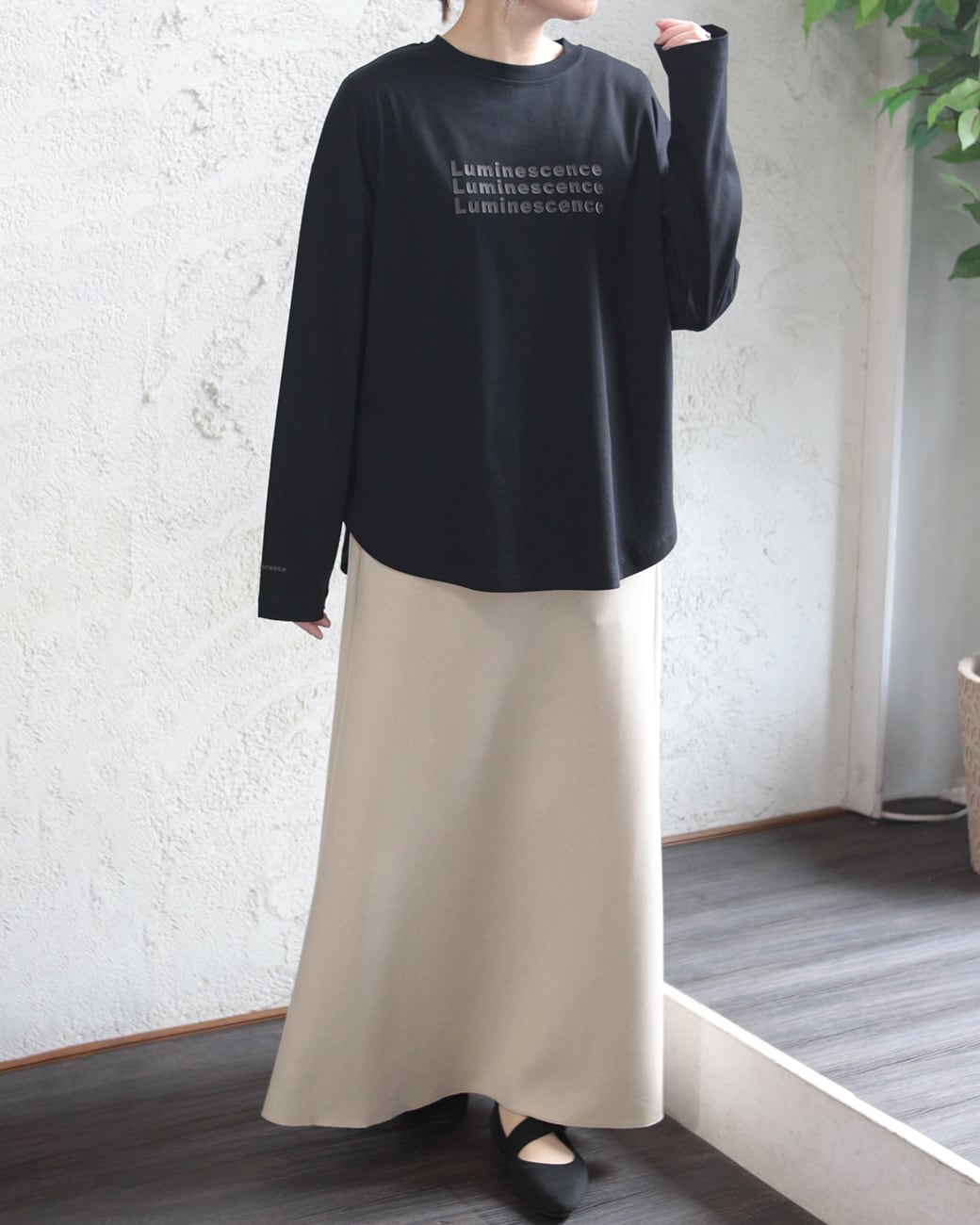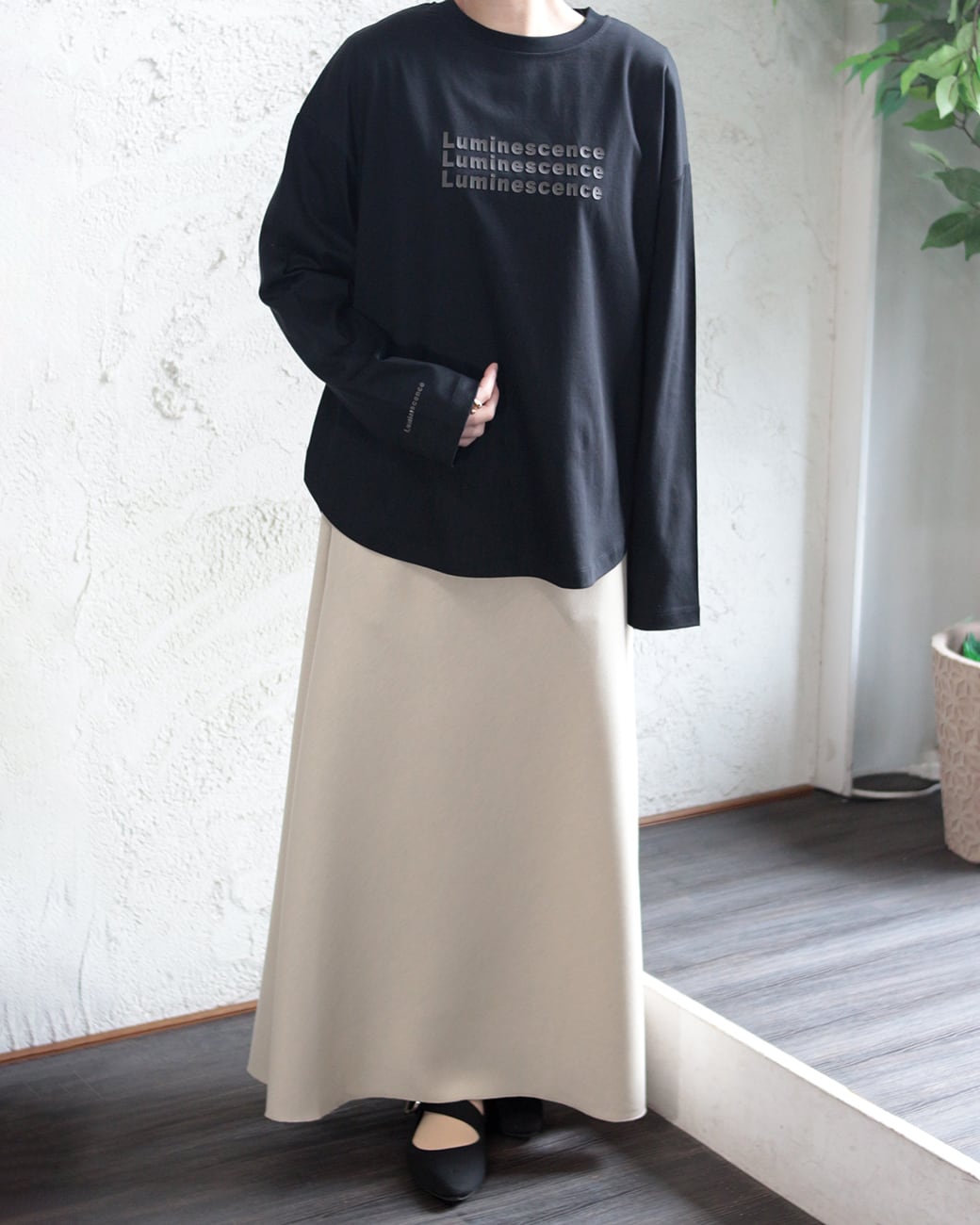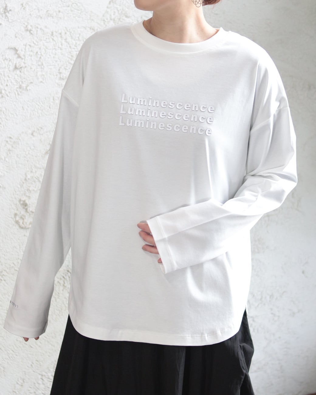 フロントだけでなく袖口にもシリコンプリントが入っているのでレイヤードとしても◎