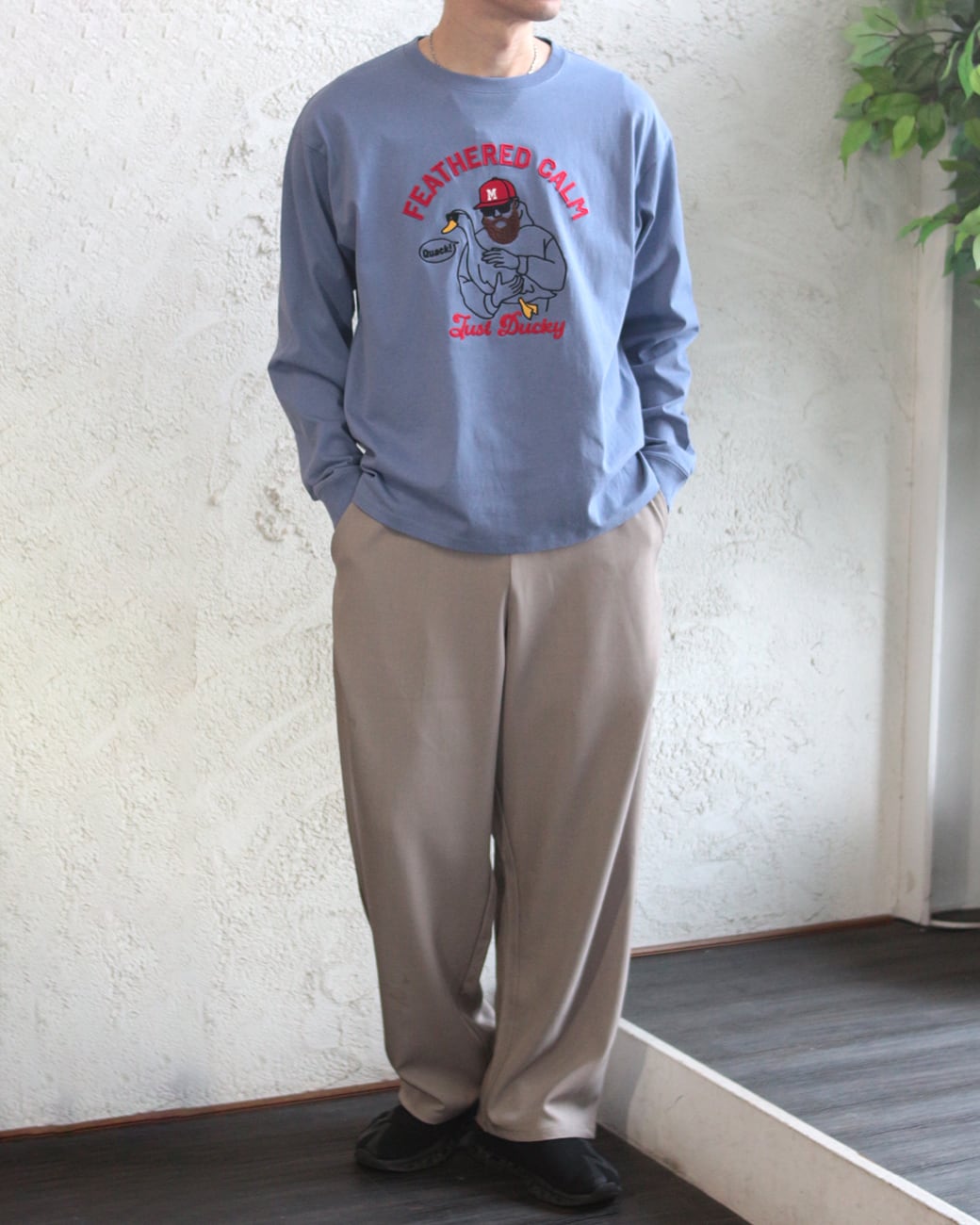 サラッとした素材で、落ち感もめちゃくちゃいい!