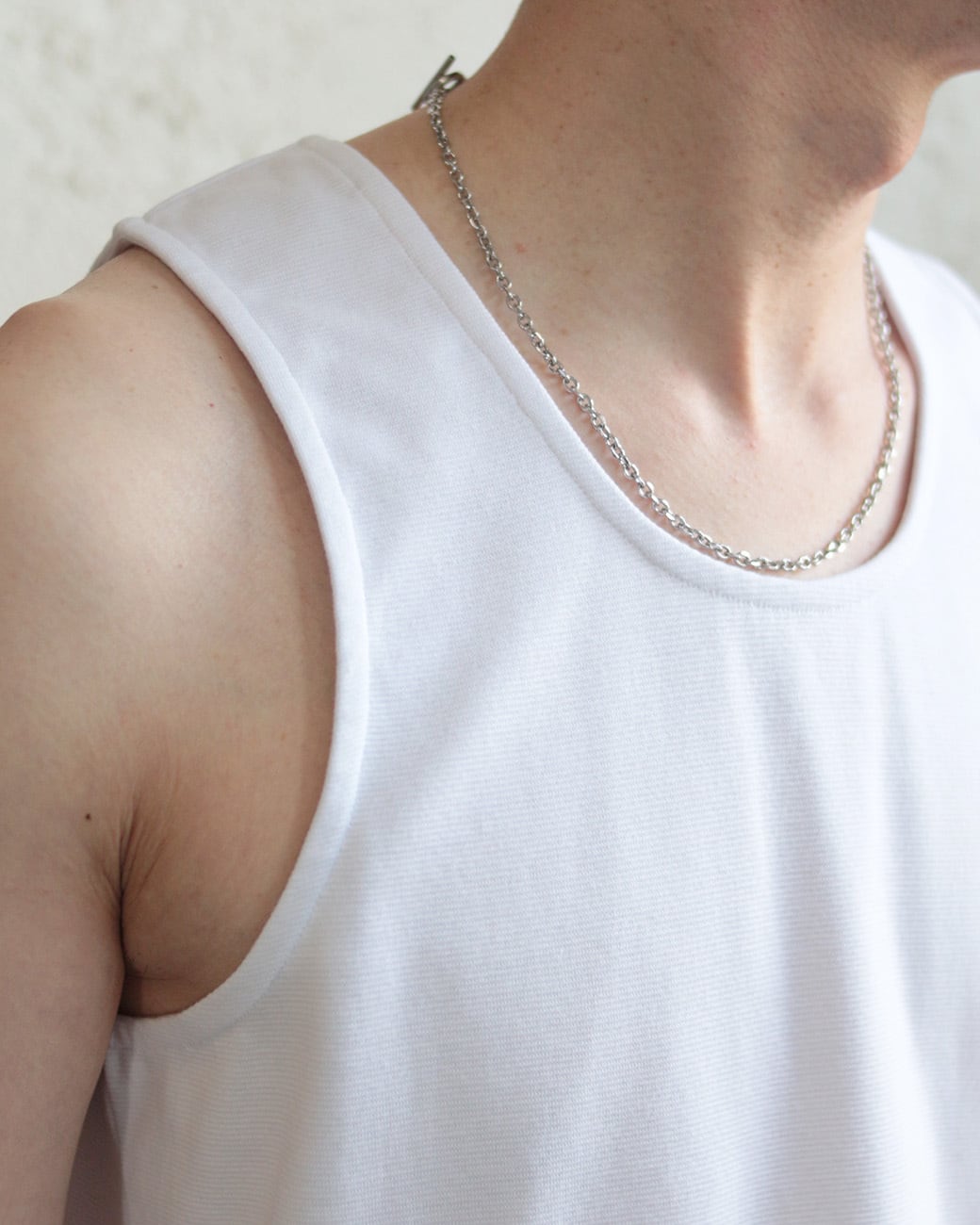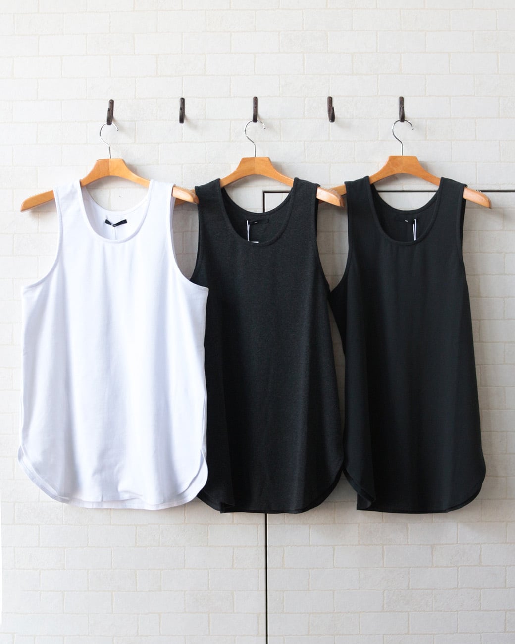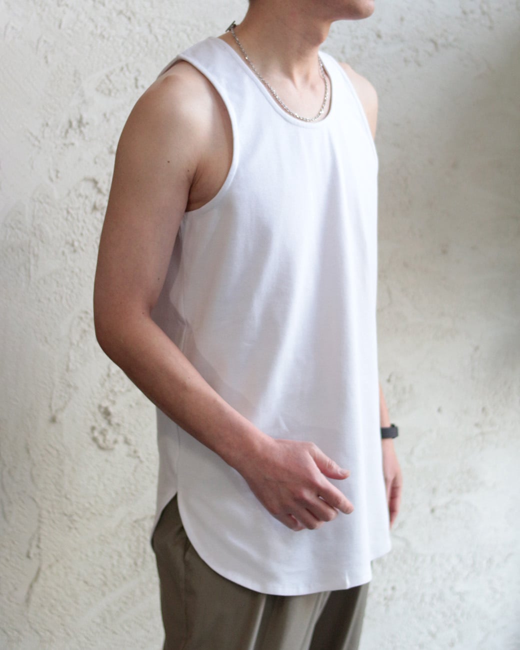 着丈長めのタンクトップ。
