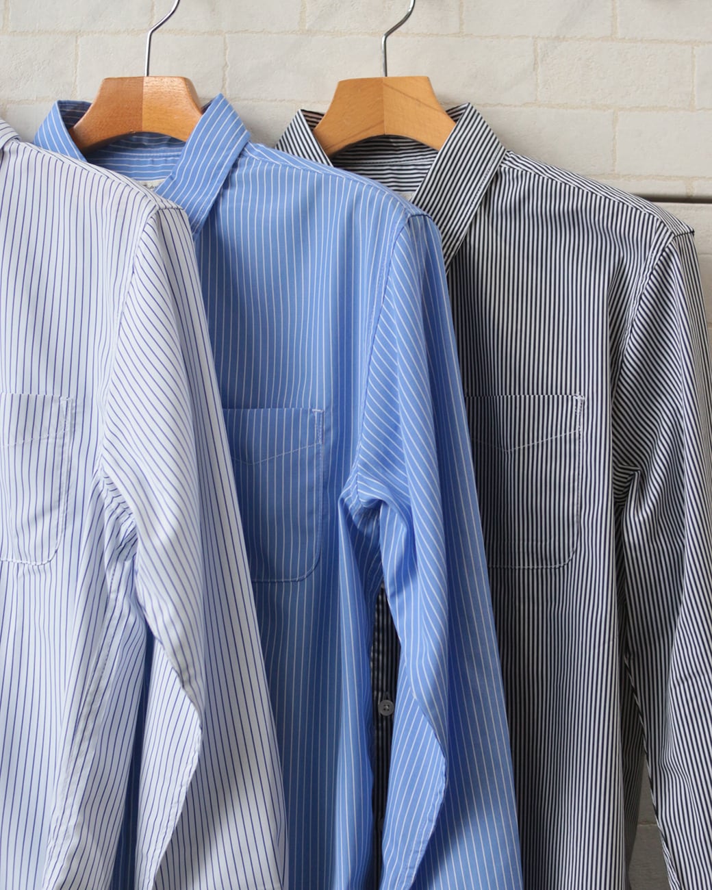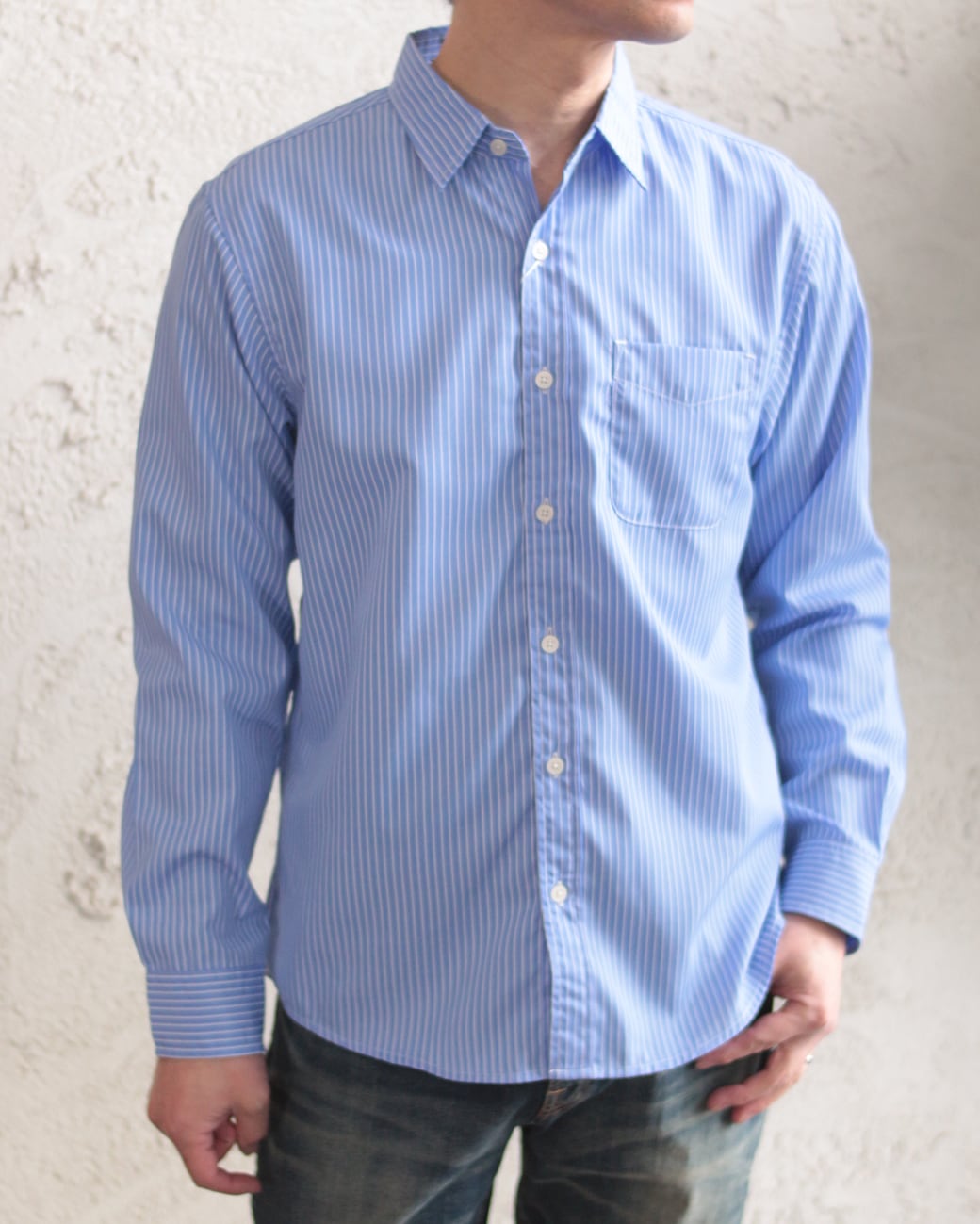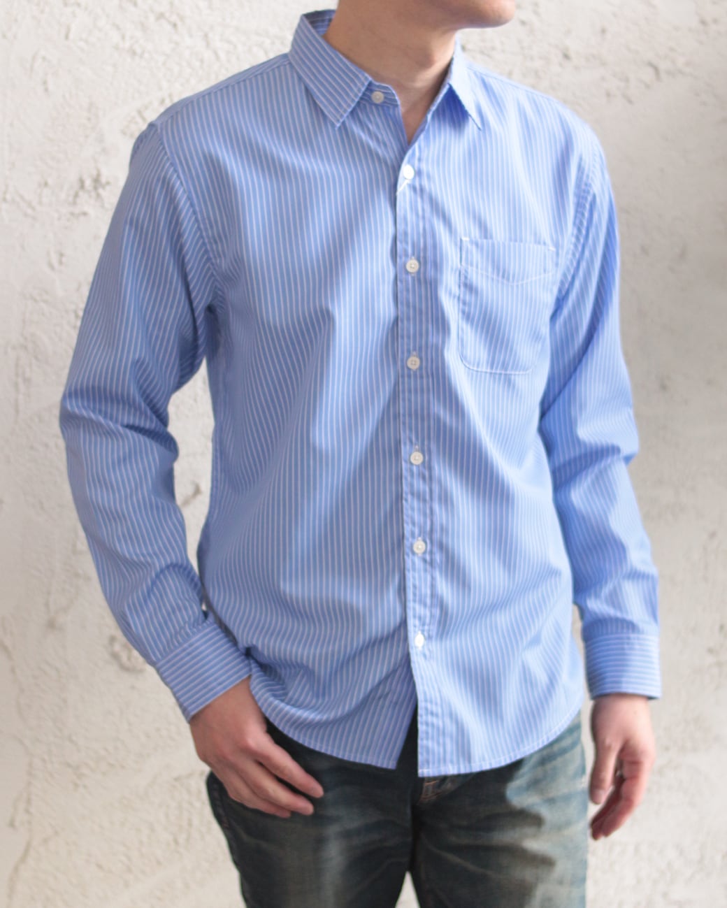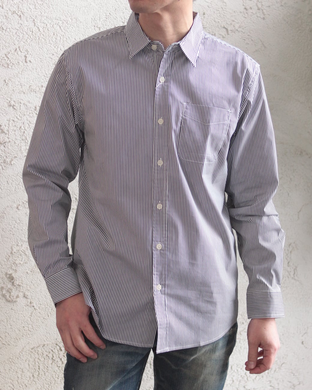 ブロード 長袖 ストライプ キレイめ 細め レギュラー