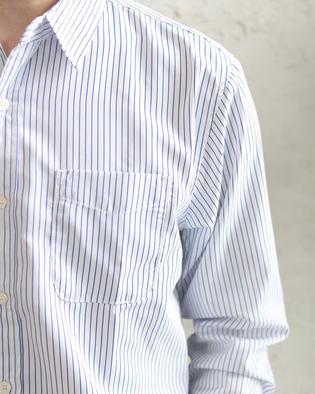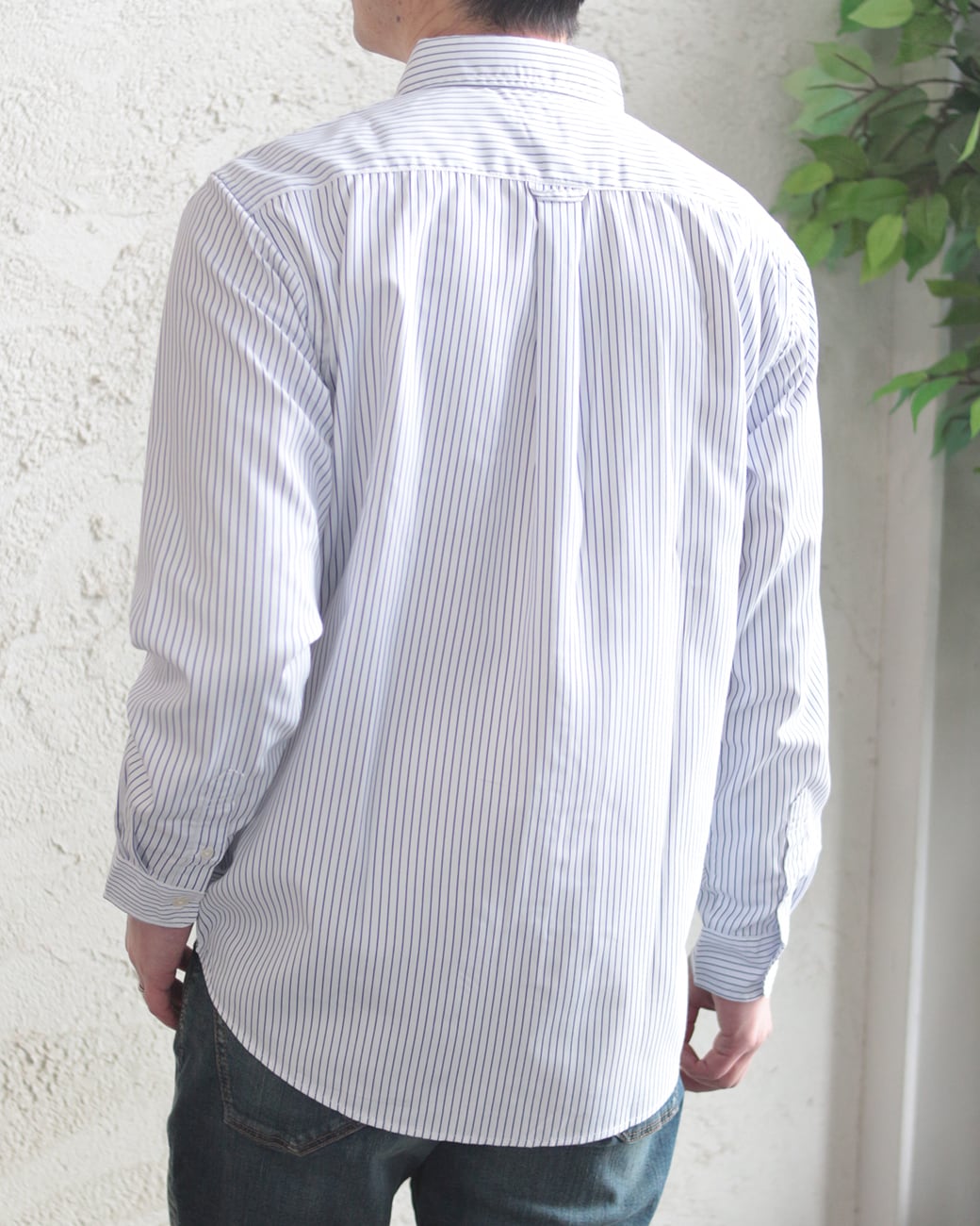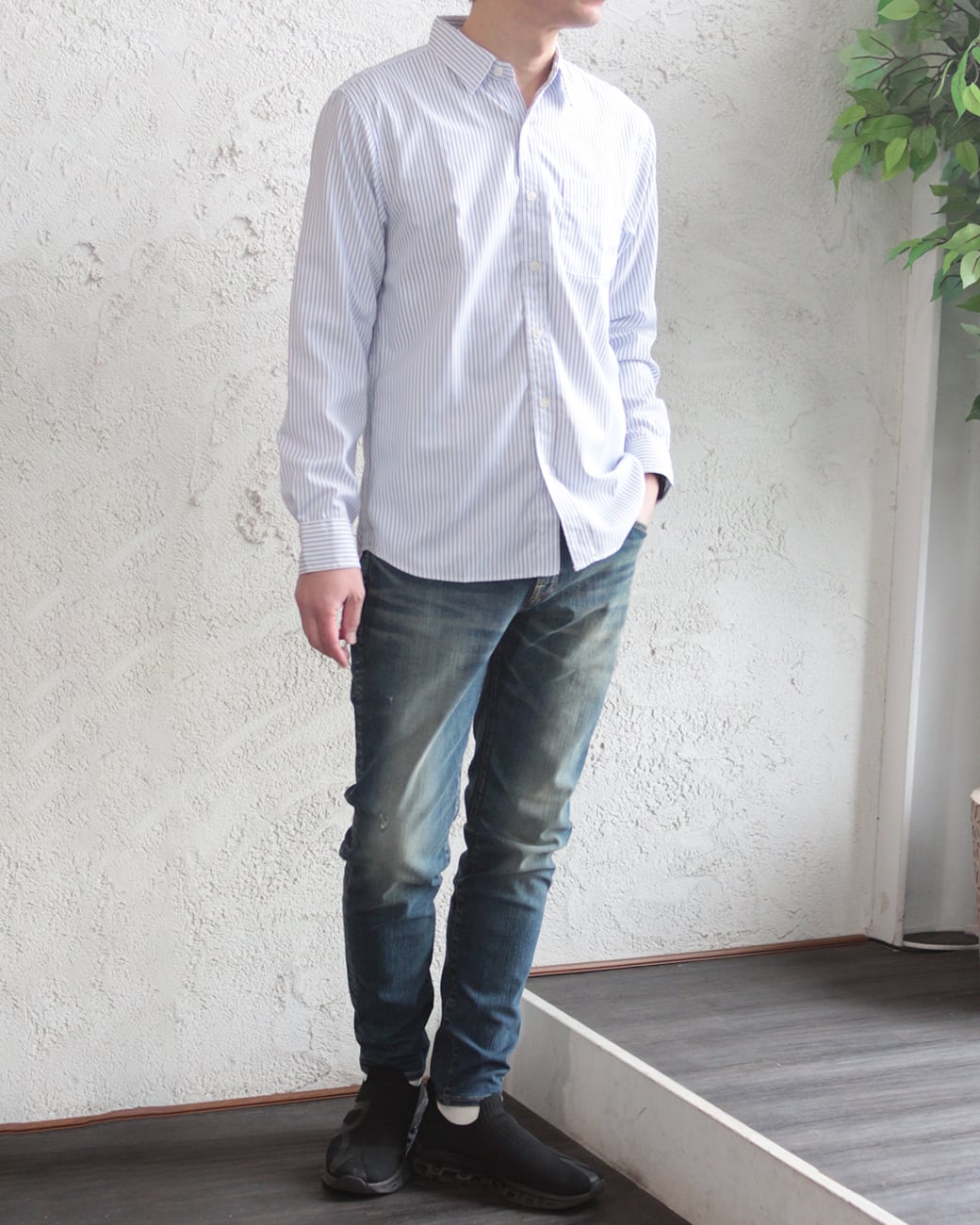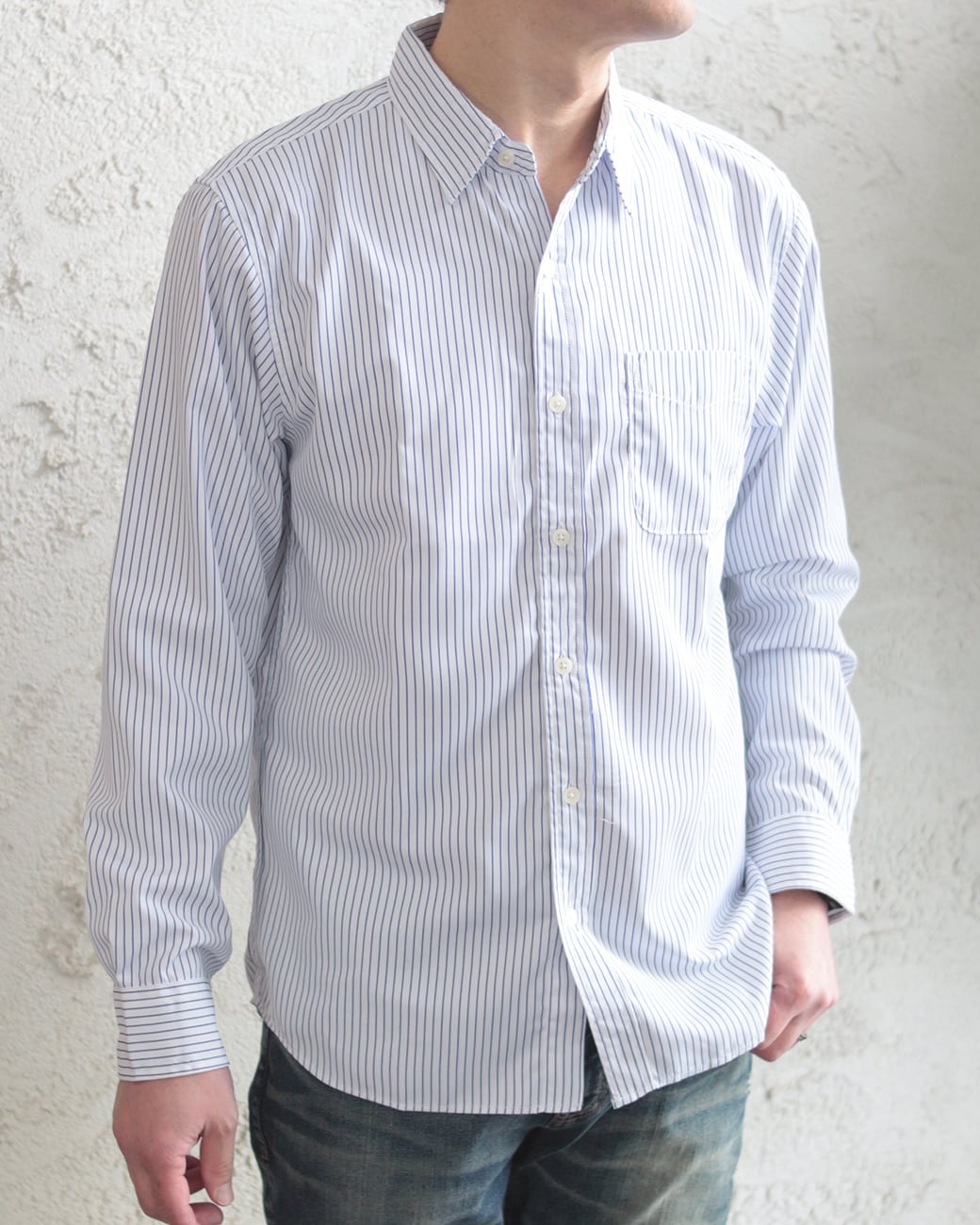 ブロード 長袖 ストライプ キレイめ 細め レギュラー