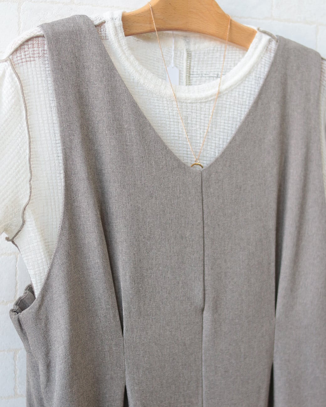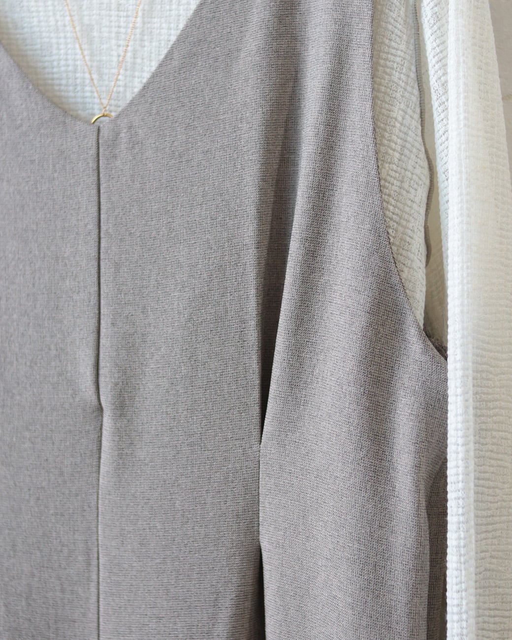 肩紐タイプとVネックタイプで、がらりと印象が変わります。