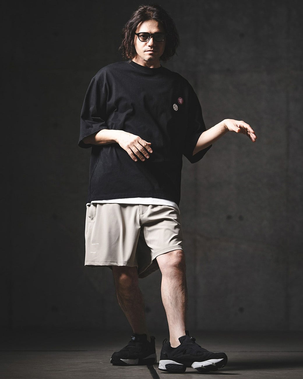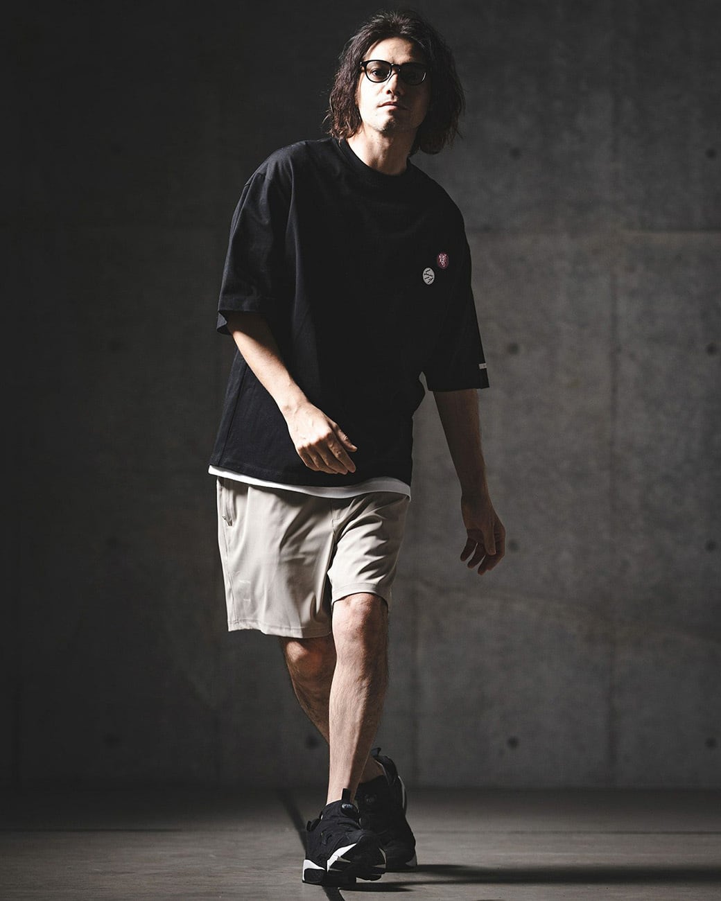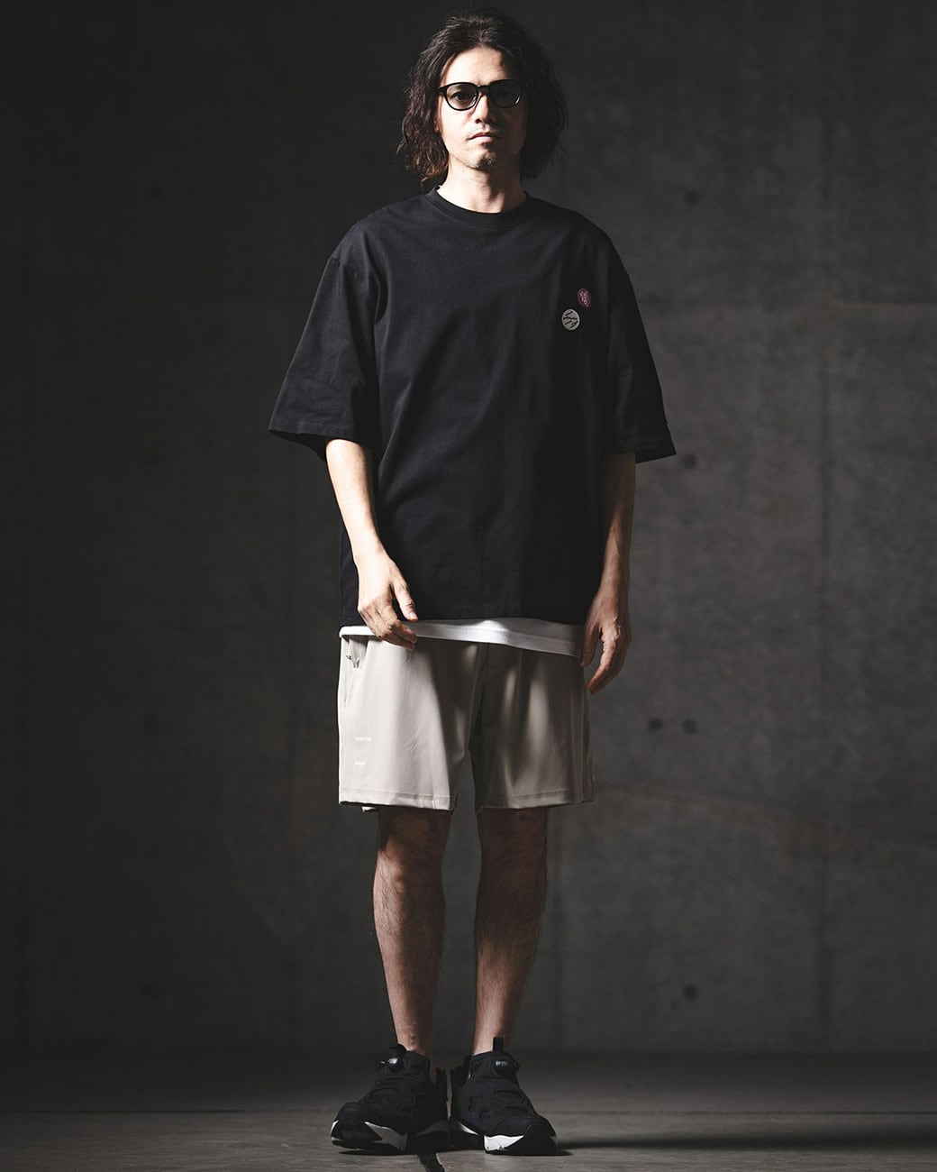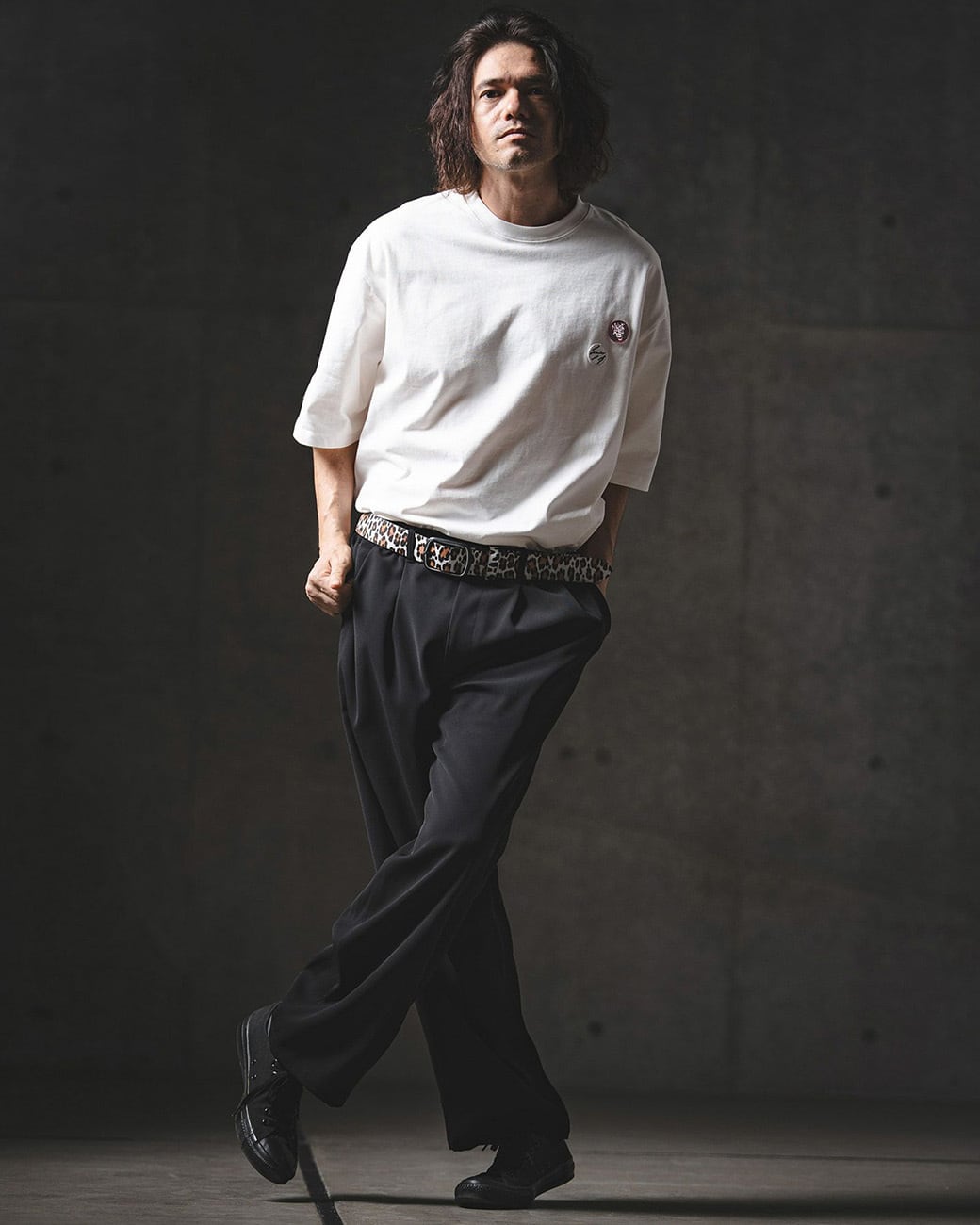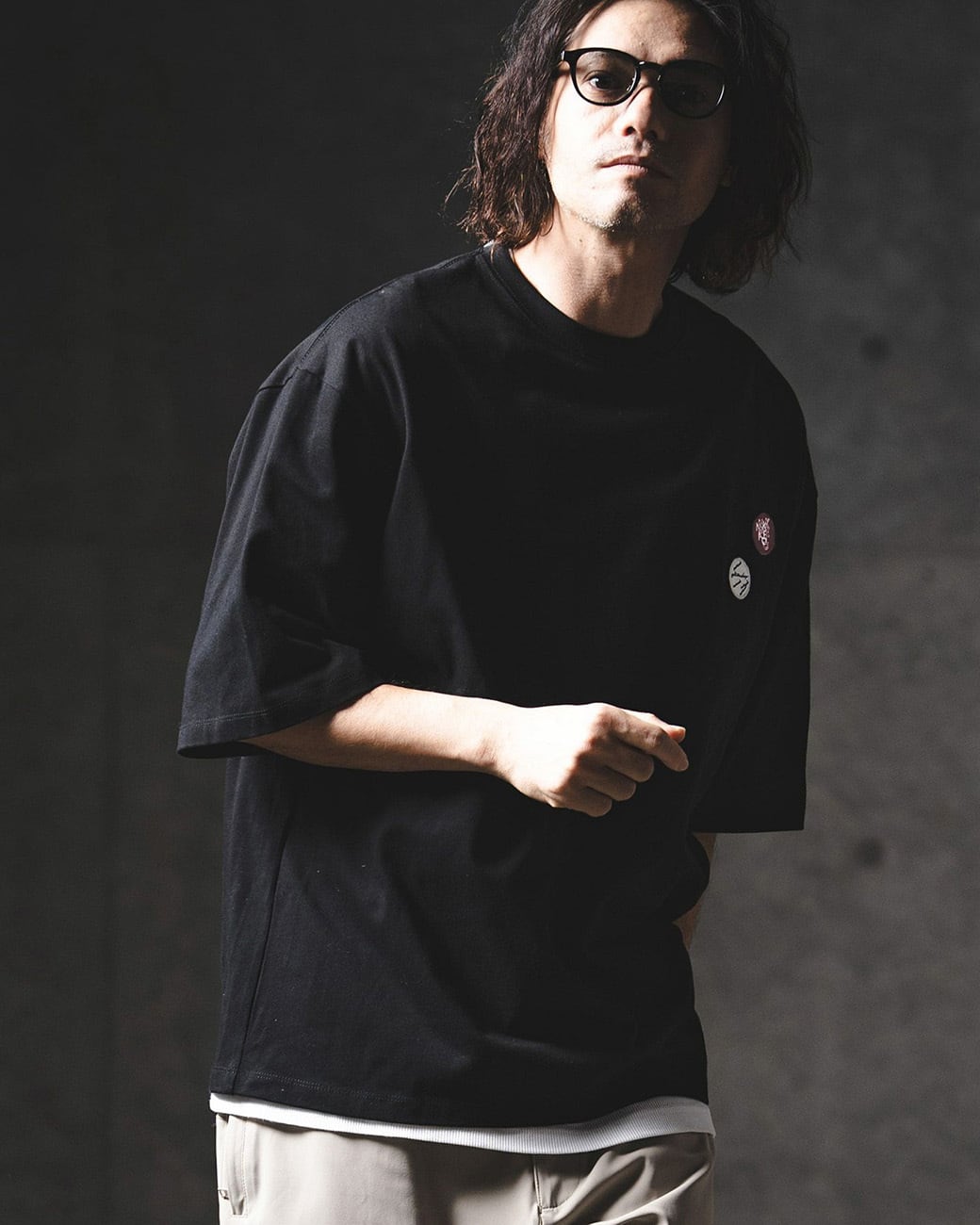 胸元にワッペン刺繍を施し、ミニマルな構成の中にさりげないアイキャッチをプラス。