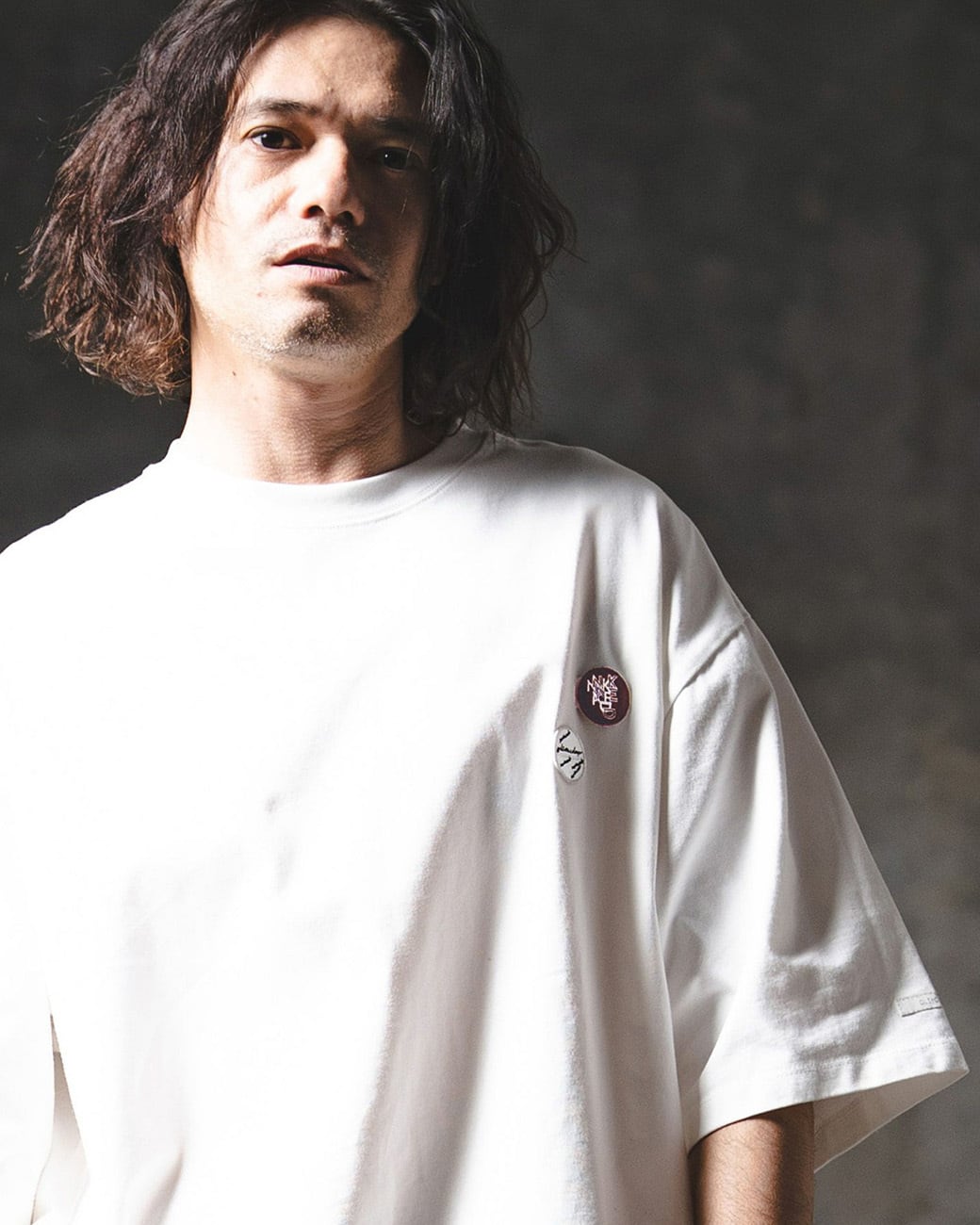 ワッペン刺繍デザインが映えるオーバーサイズTシャツ。