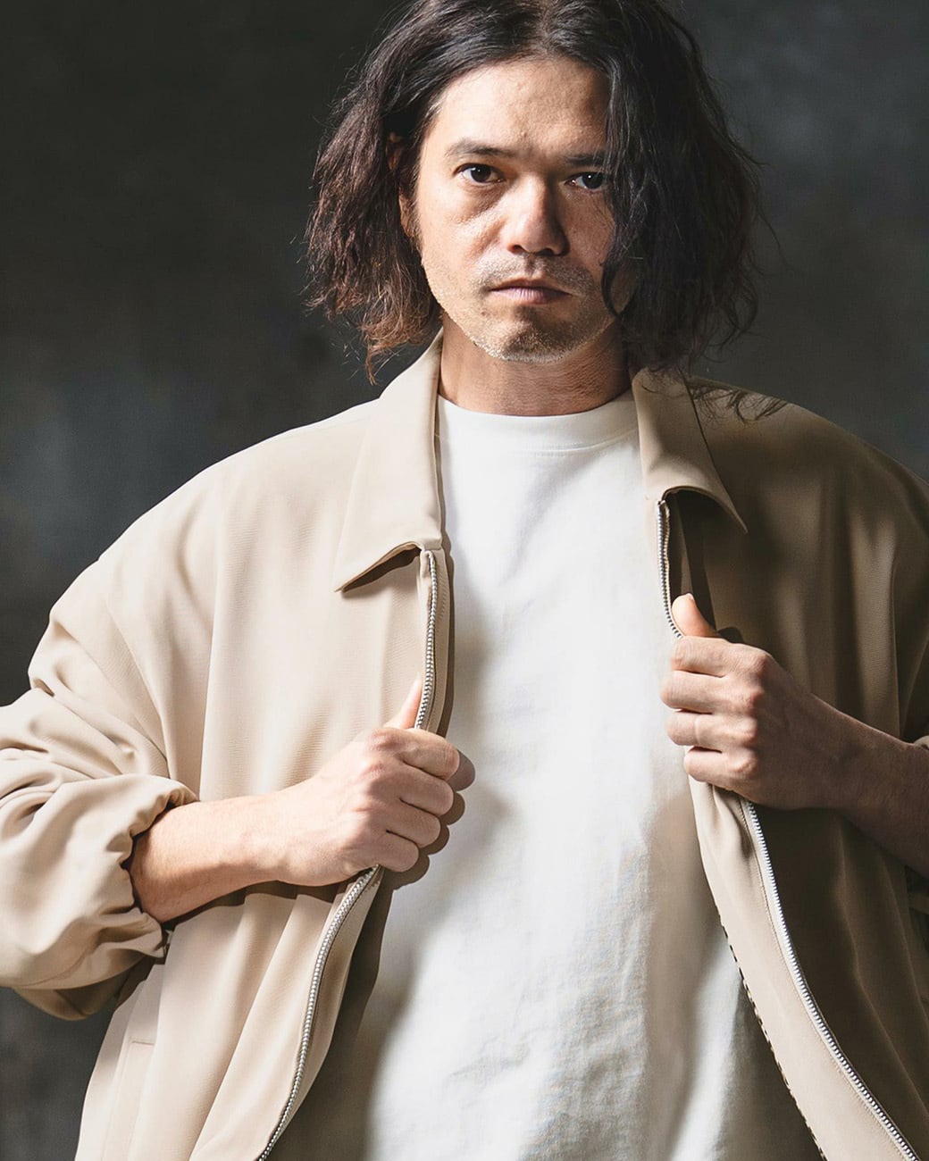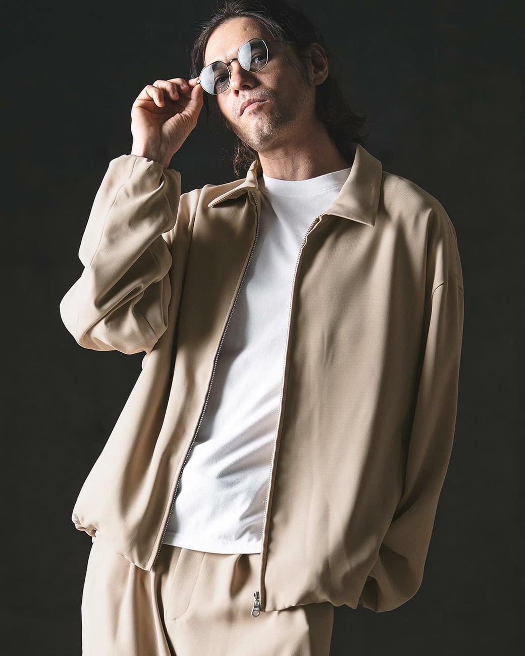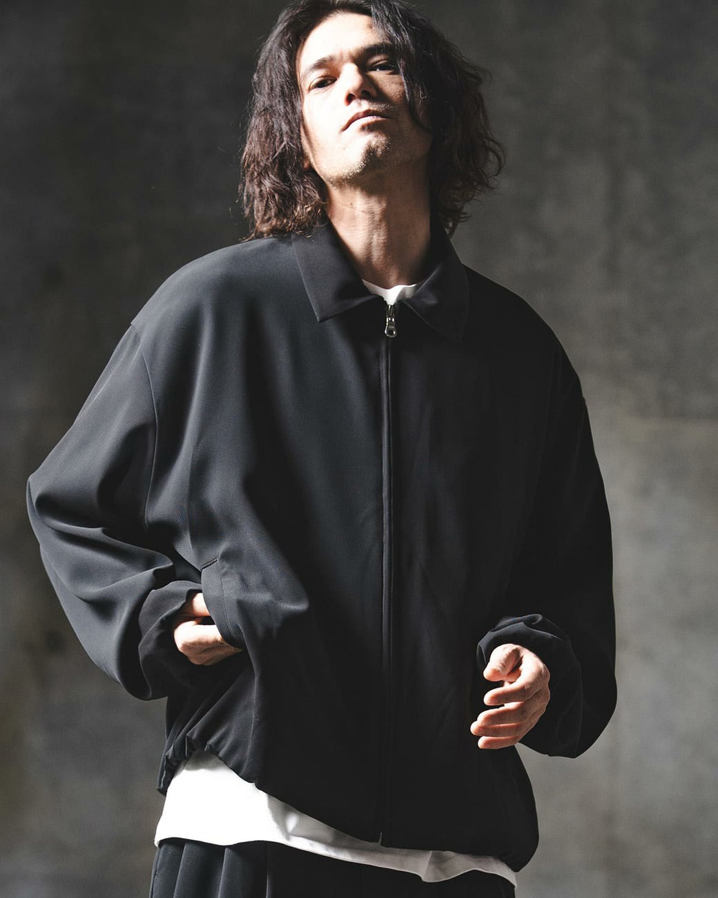 モードなディテールとファブリックを組み合わせ、モダンな印象にモディファイしたジップアップジャケット。