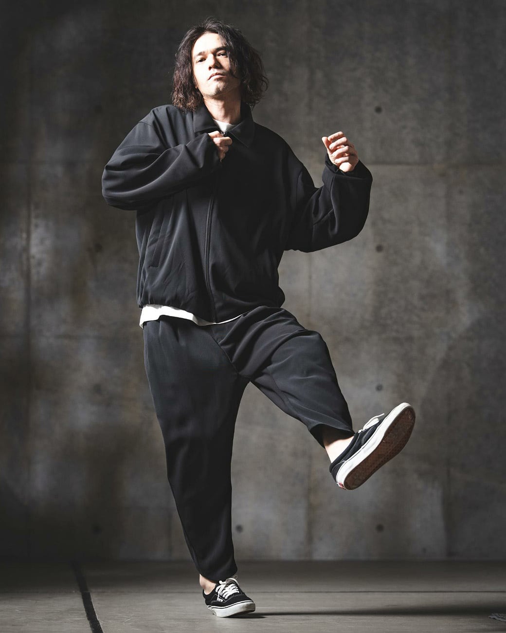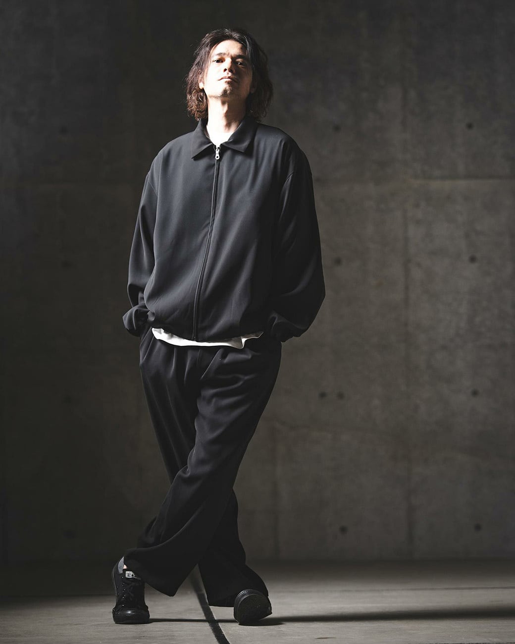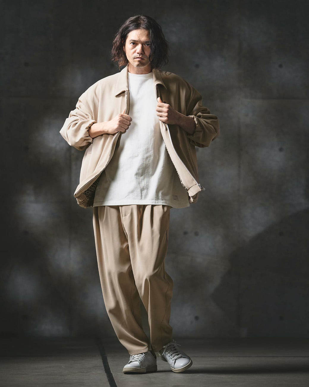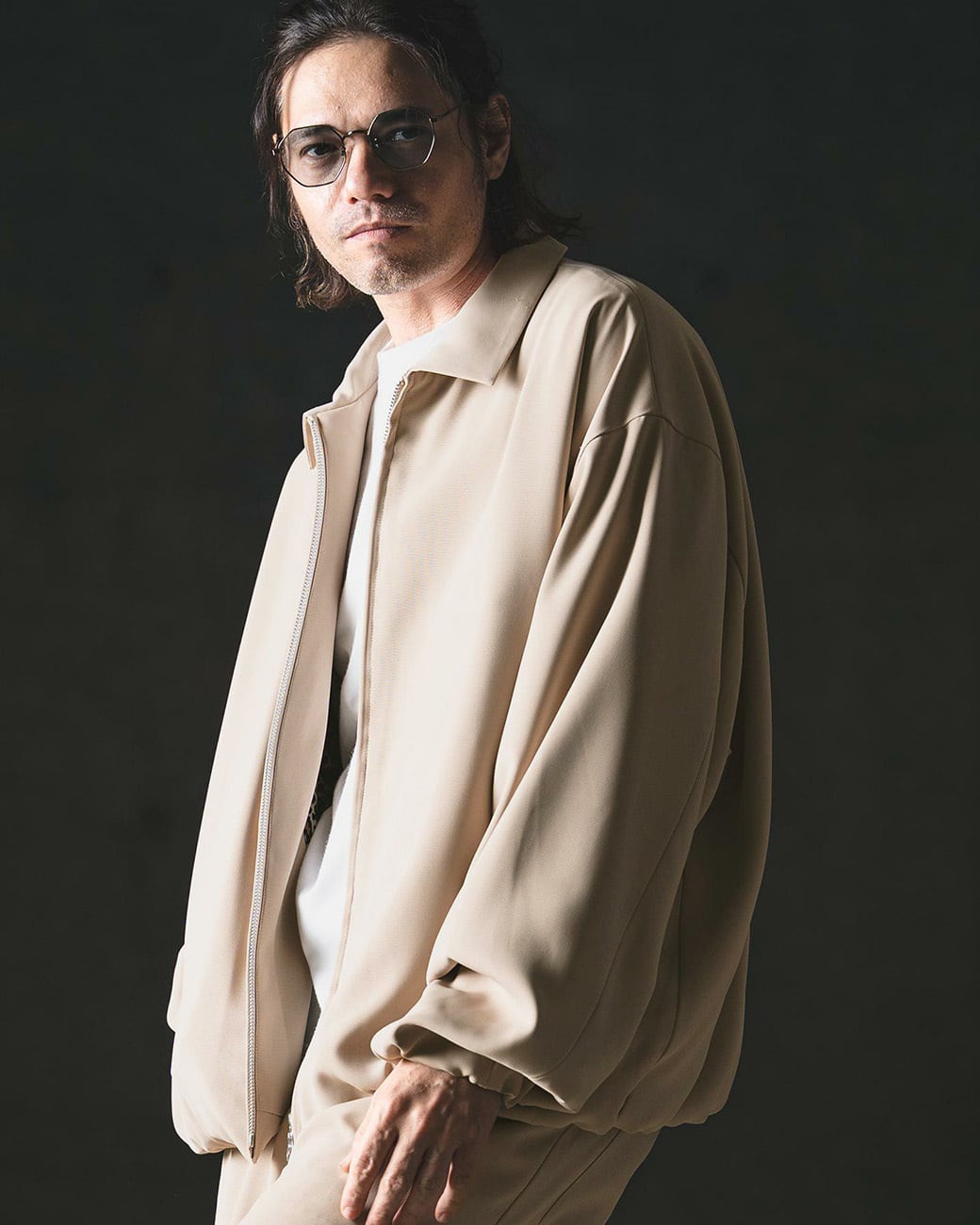 モードなディテールとファブリックを組み合わせ、モダンな印象にモディファイしたジップアップジャケット。