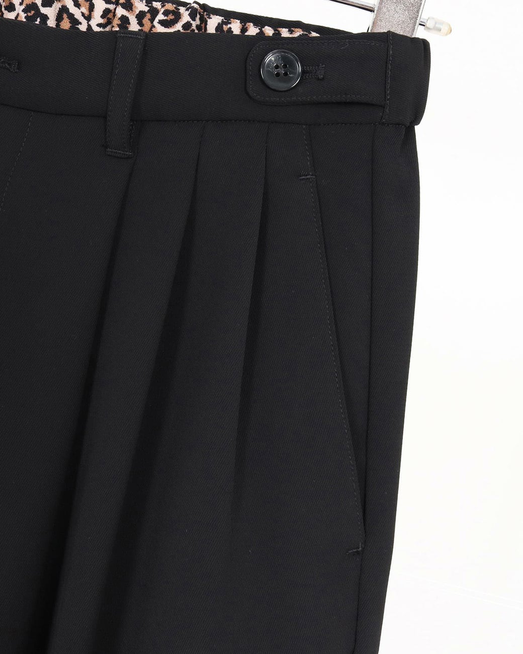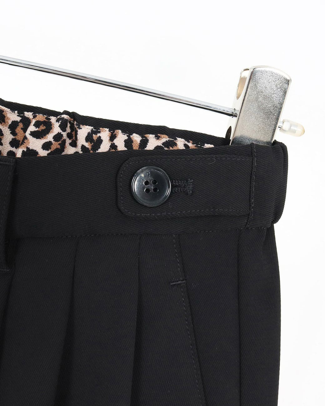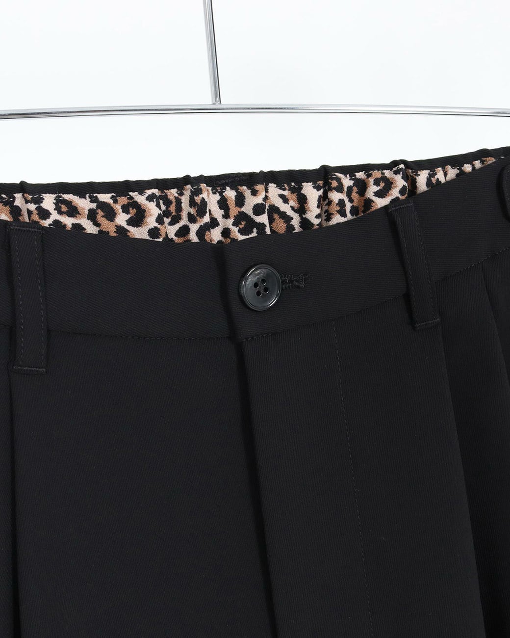 ウエストの帯裏にはレオパード柄のテキスタイルを貼り合わせ、見えない部分にもさりげない遊び心を。