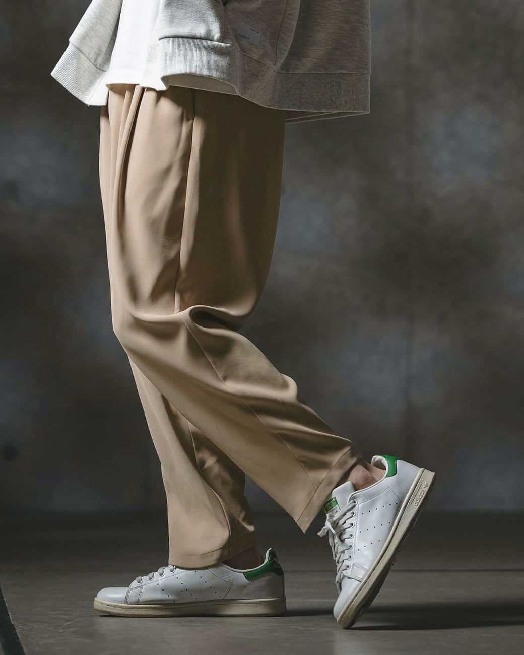 3タックデザインがシルエットをさらにキレイにみせてくれる印象で、ヒップ周りのボリュームをナチュラルに昇華。