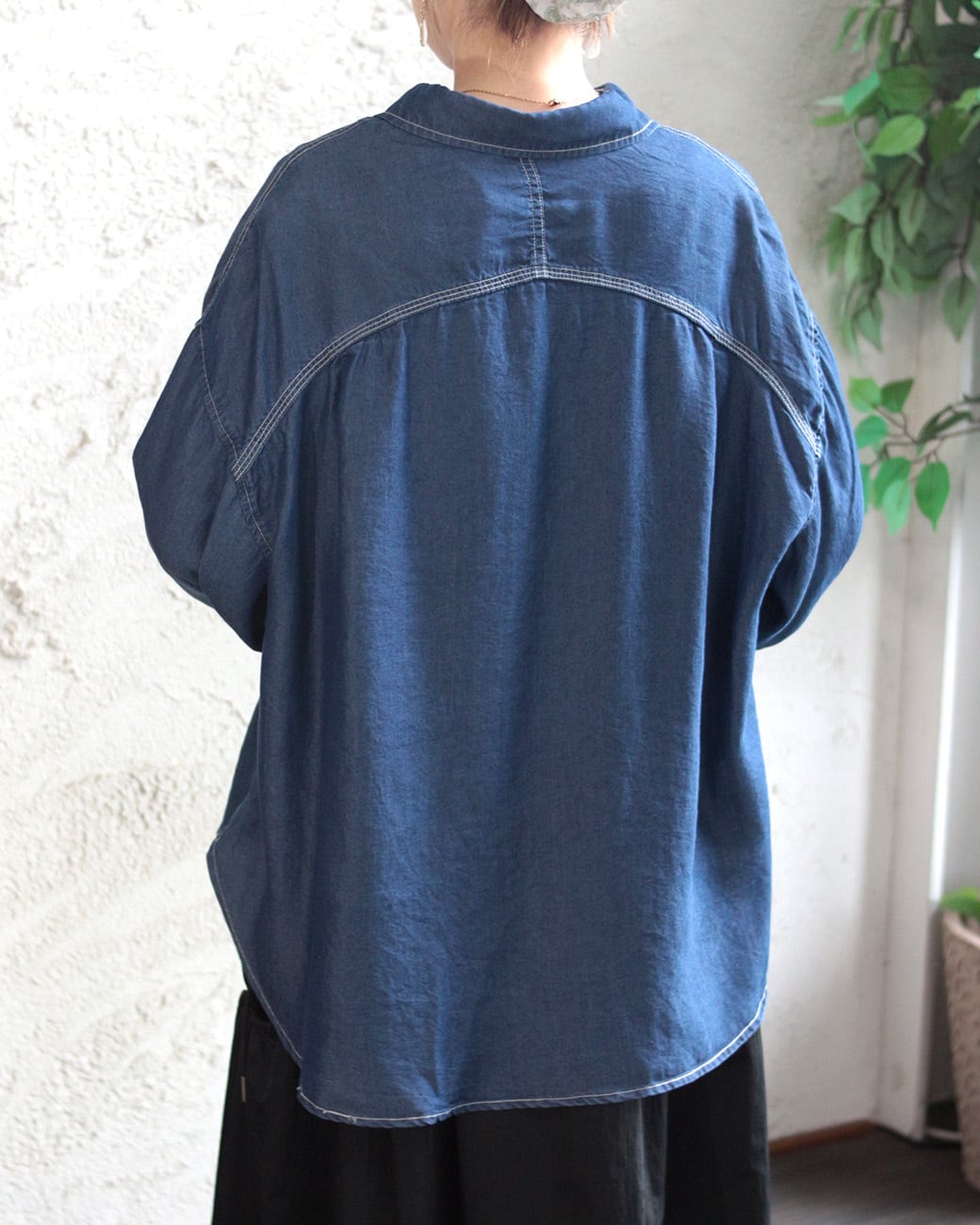 デニム オーバーシャツ 接触冷感 オールシーズン 春夏秋冬
