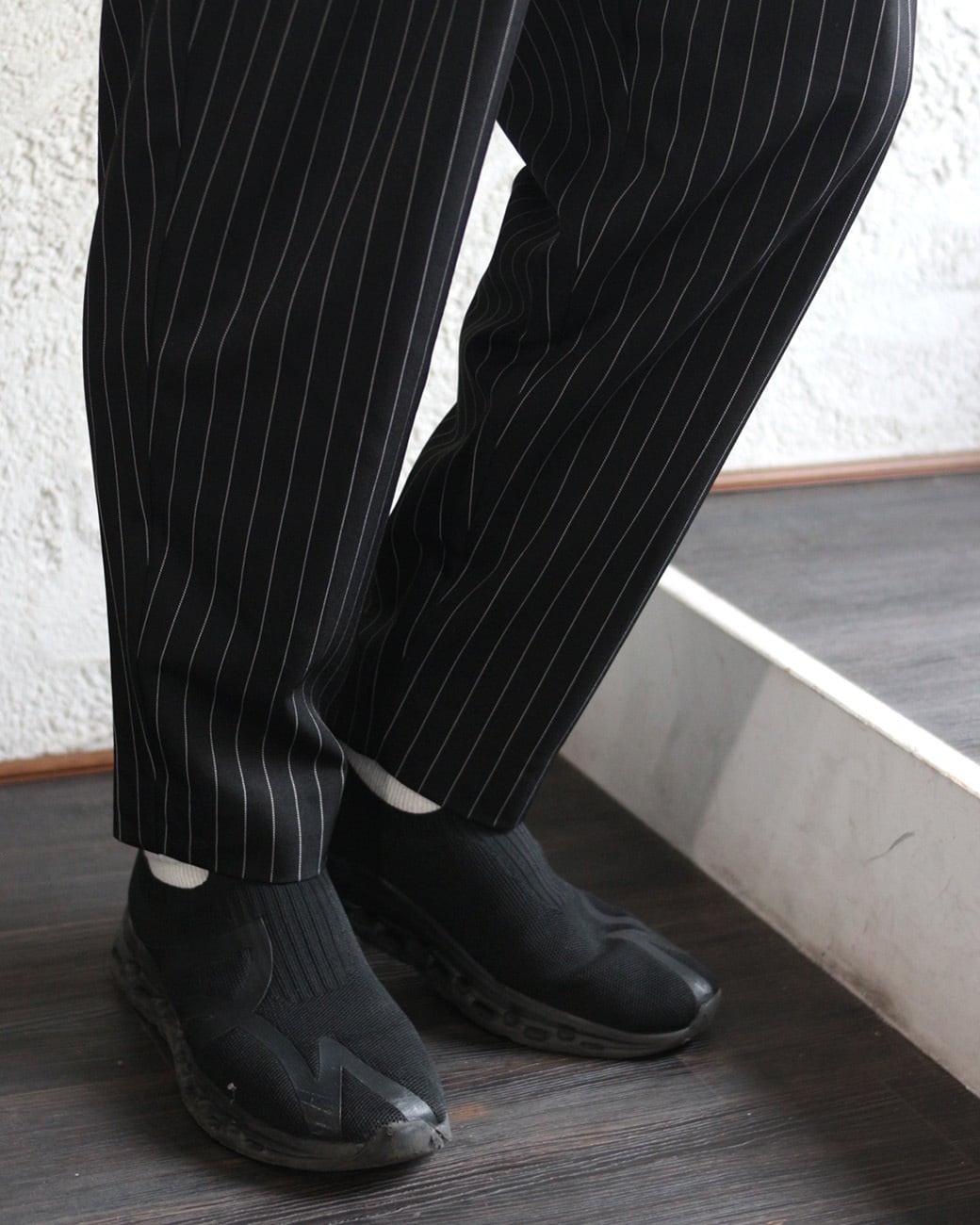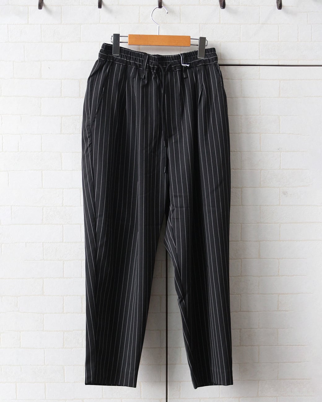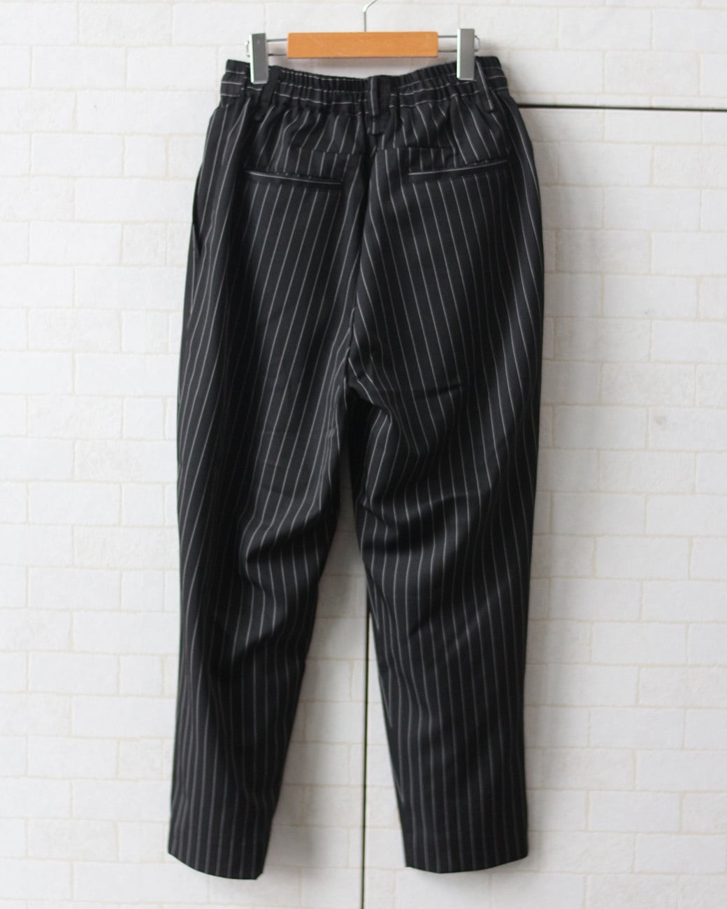 洗練された表情と快適な穿き心地を兼ね備えたストライプ柄スラックス。