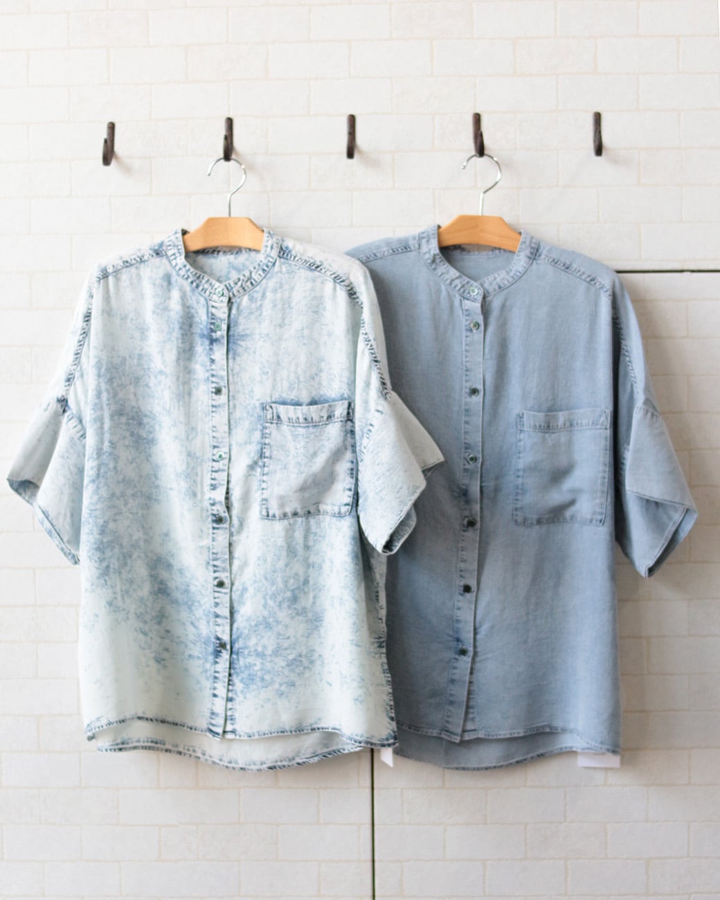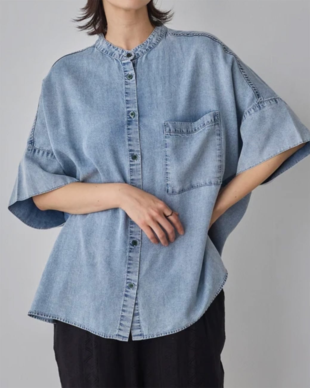 【テンセルデニムオーバー半袖シャツ】