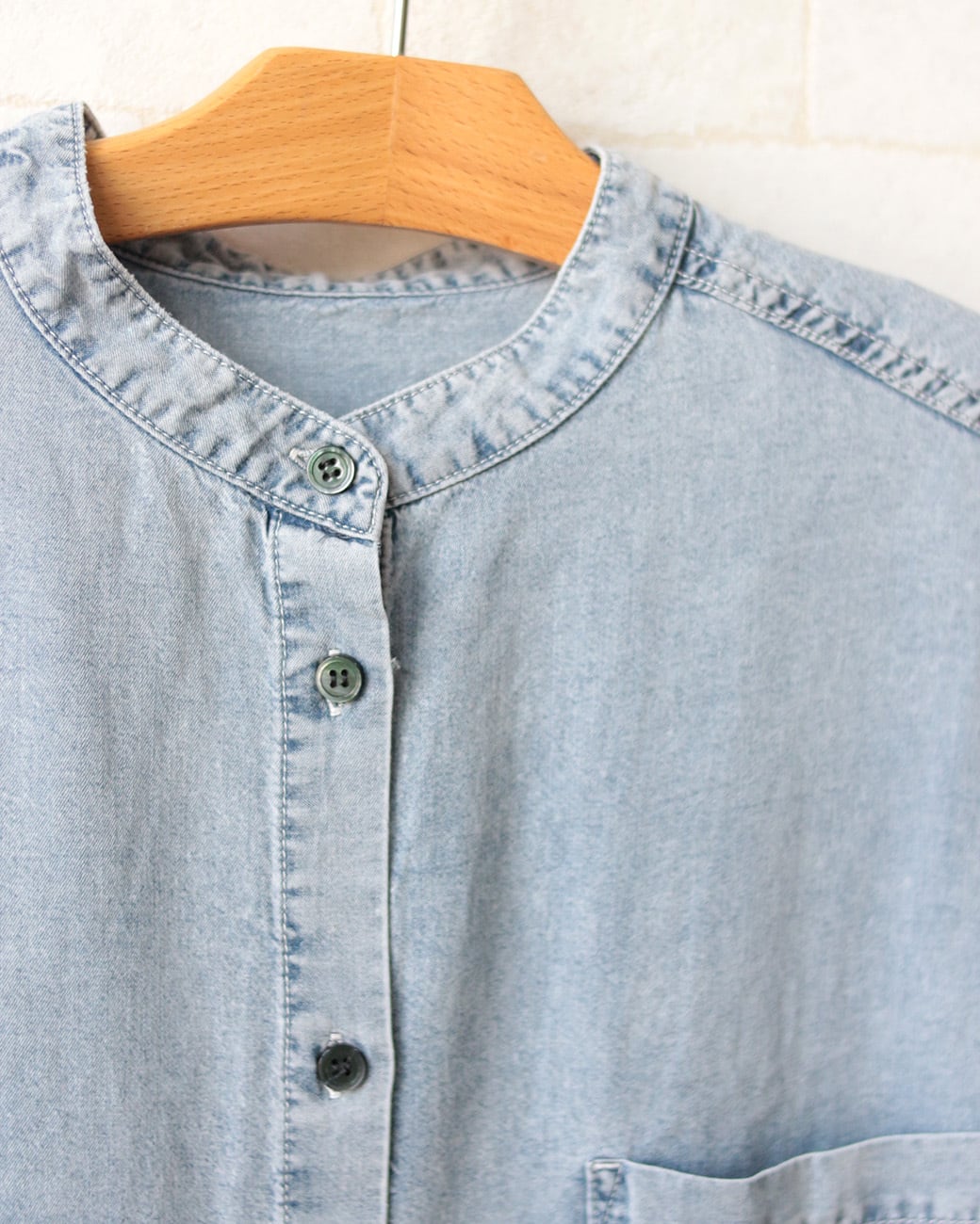 衿のないスッキリとしたシルエットで、二の腕隠しにも最適です。