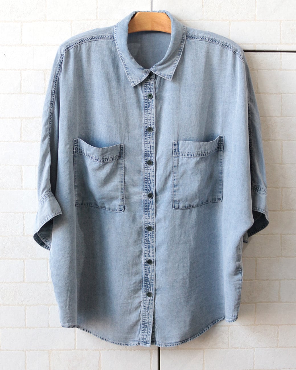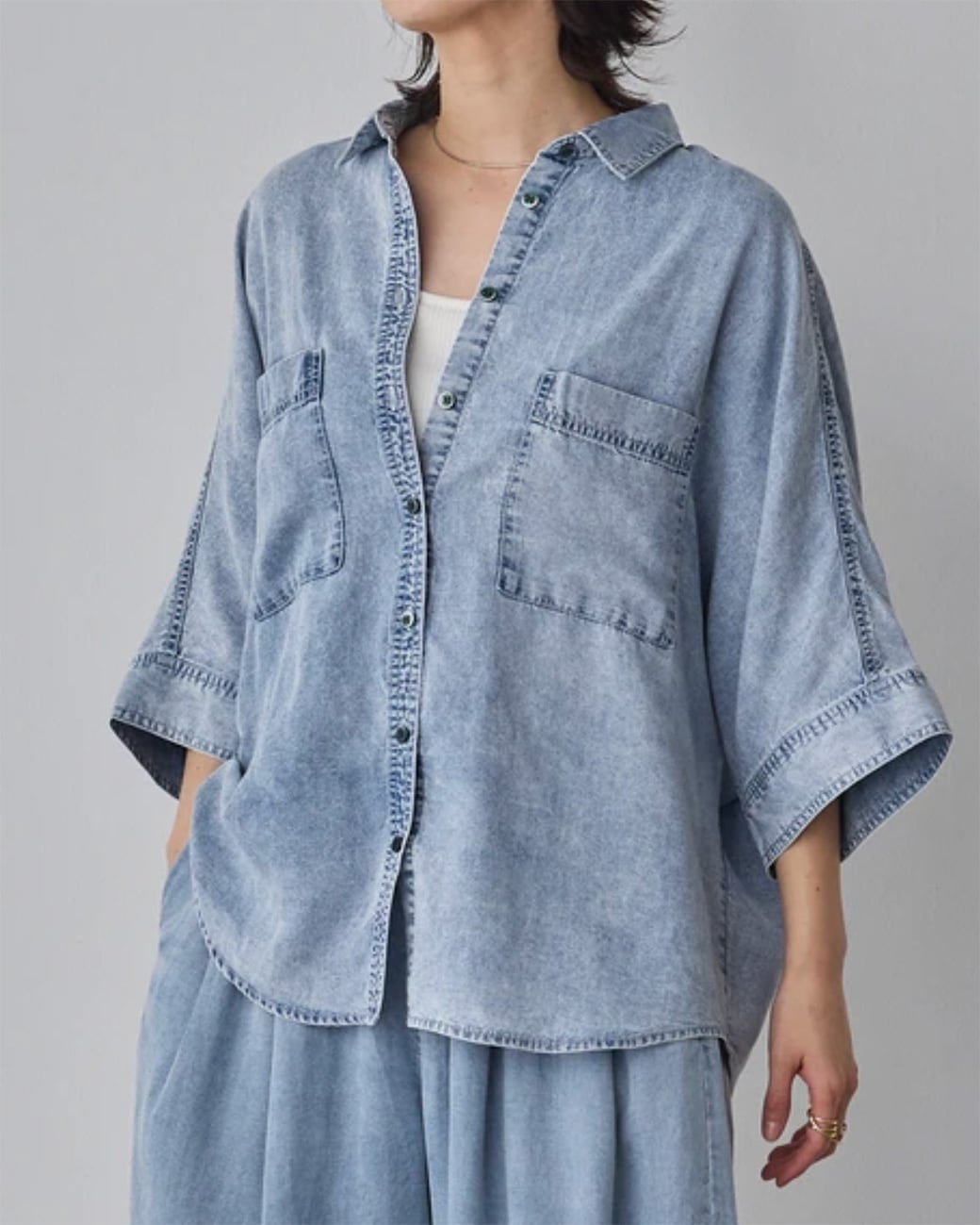 デニム ドルマンシャツ セルロース 接触冷感 春 夏