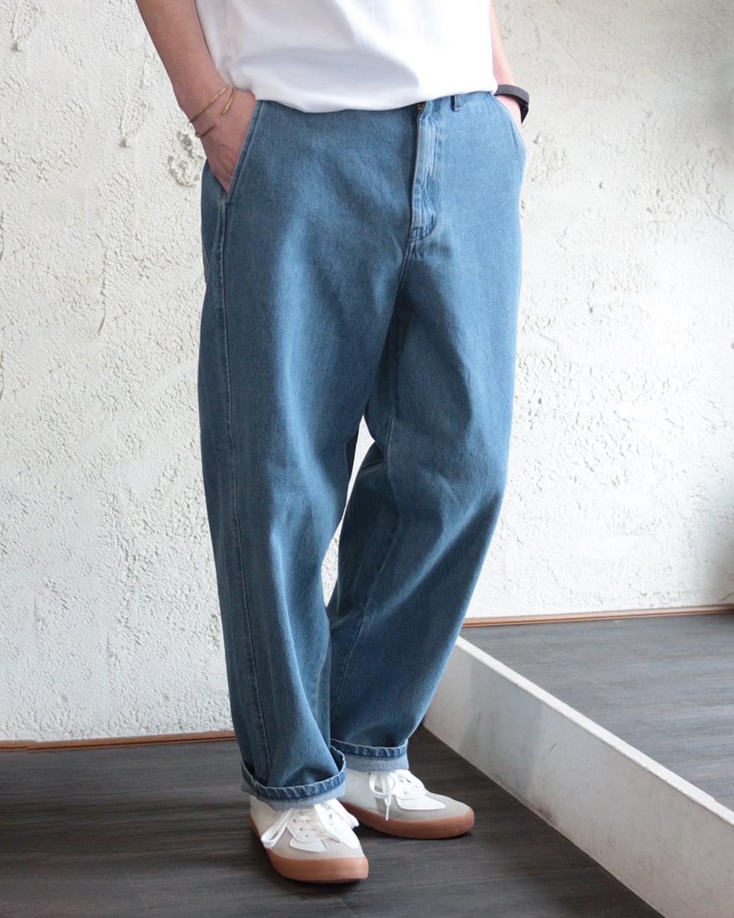 大人のワイドデニムパンツです。