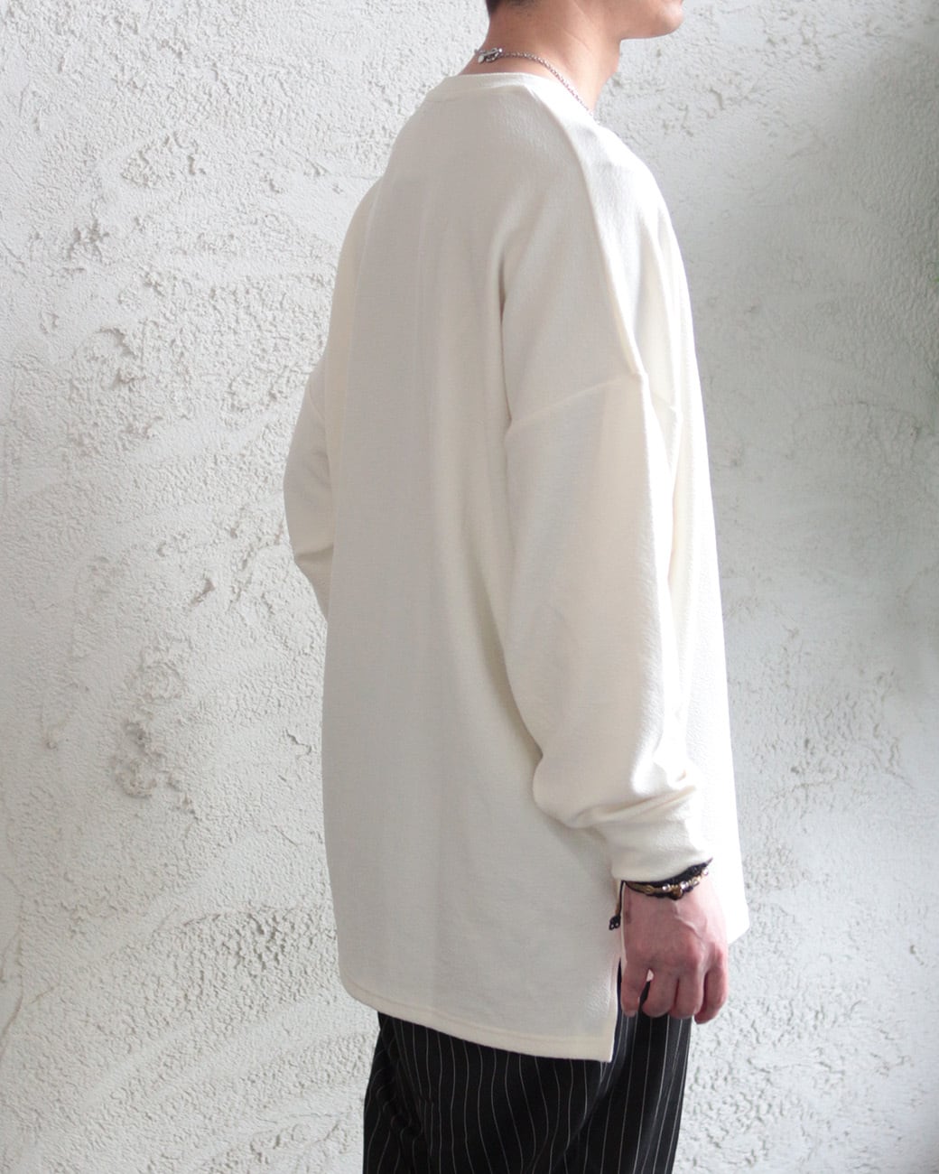 身幅や袖丈に対して贅沢に生地を使い、絶妙な「ゆるだぼ感」を叶えたドルマンシルエット。全体的に大きめなサイズ感で理想の緩さを叶えながら、サイドスリットでヌケ感をプラス。
