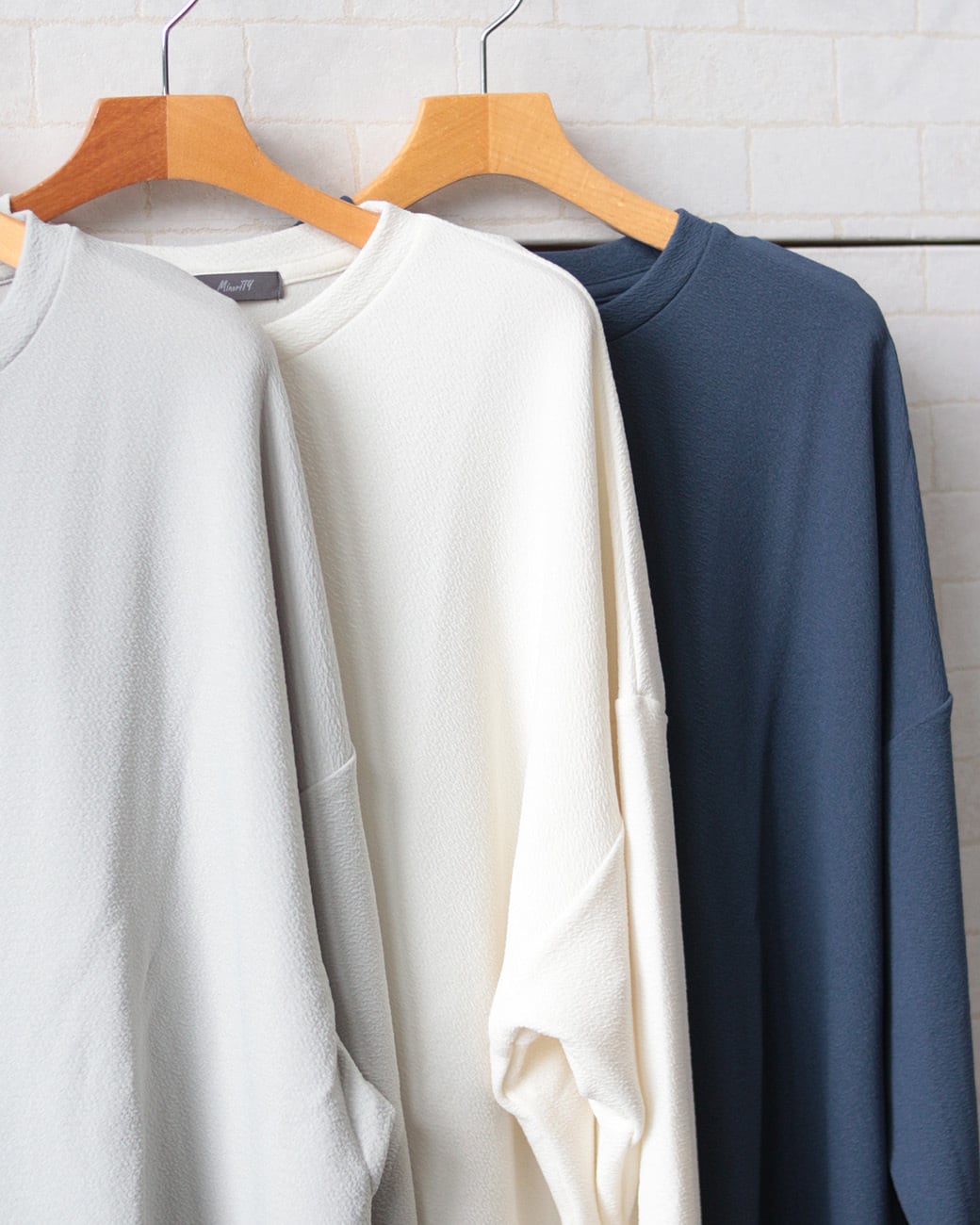 家庭用洗濯機でガシガシ洗えるうえに、シワがつきにくいのでアイロンの手間も省けてしまう梨地素材を使用。生地は柔らかく肌触りも抜群なので、着心地の良さも兼ね備えています。