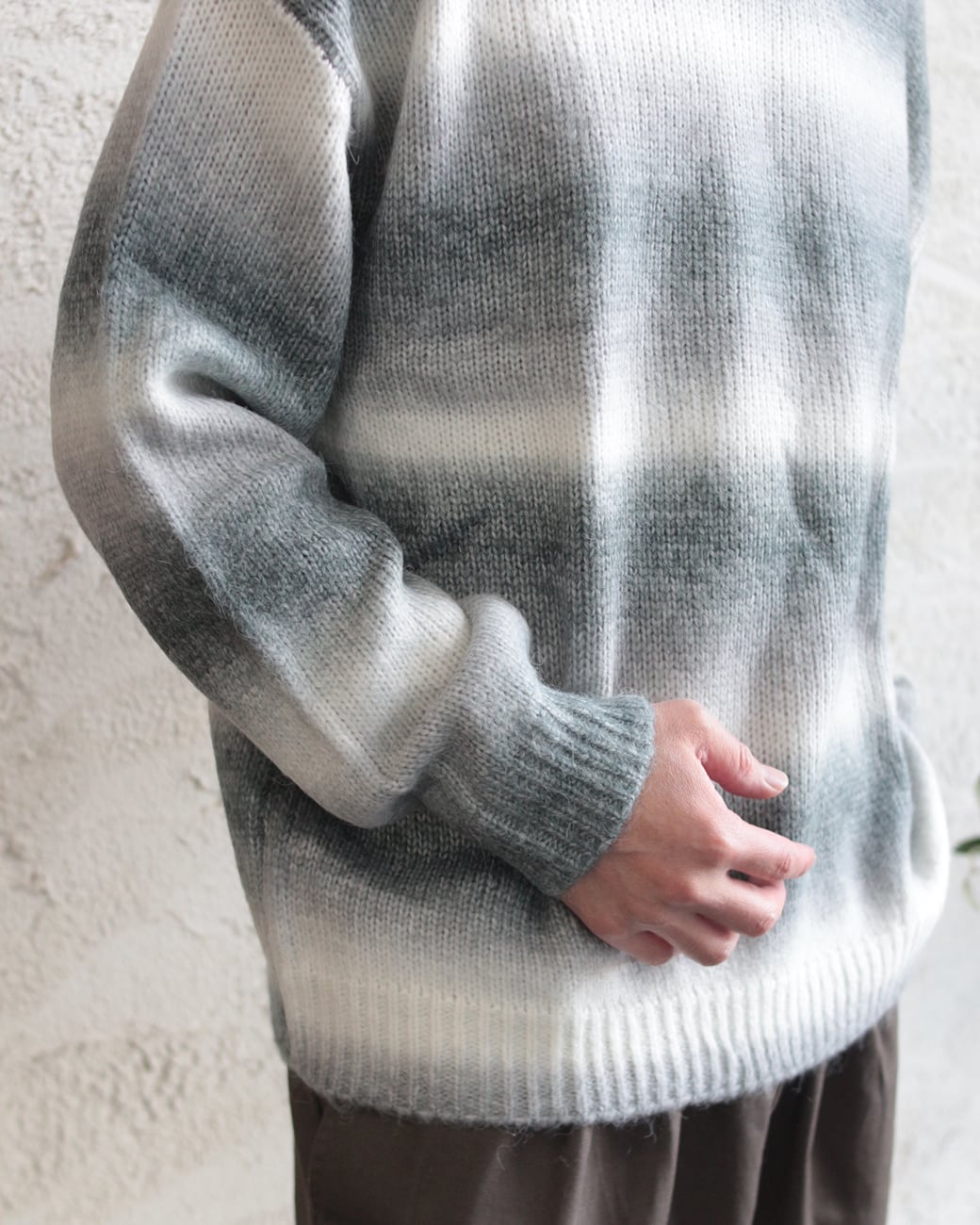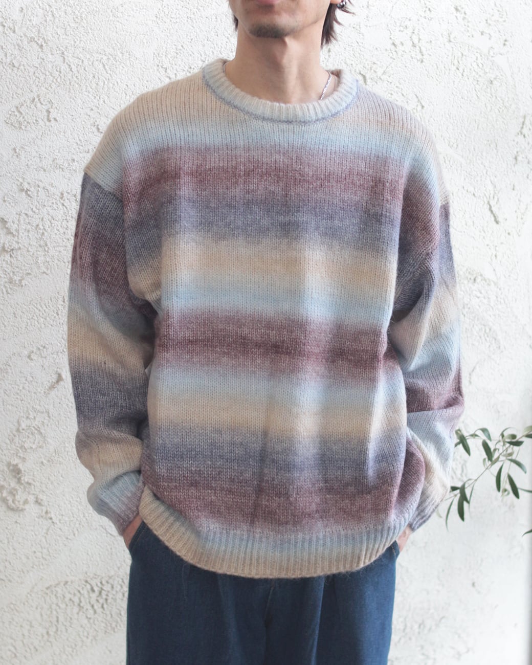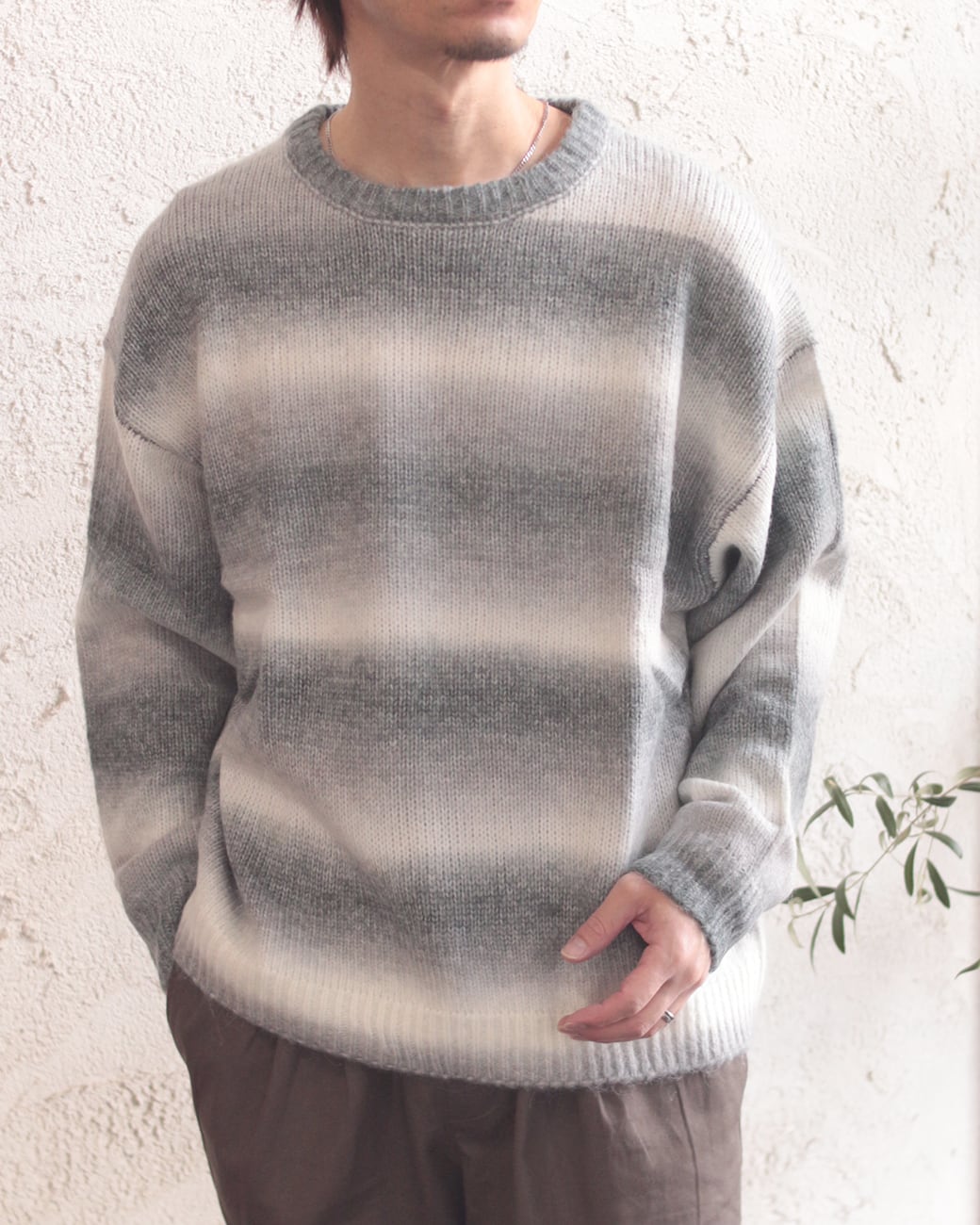 ニット セーター クルーネック ボーダー グラデーション 冬 秋 ビッグ ゆったり 大きめ オーバー