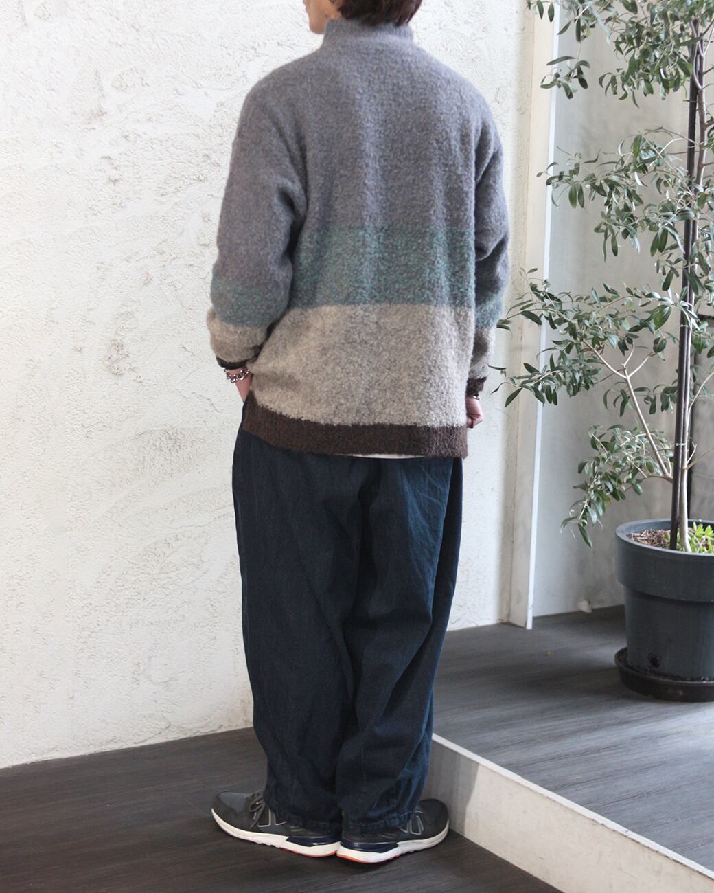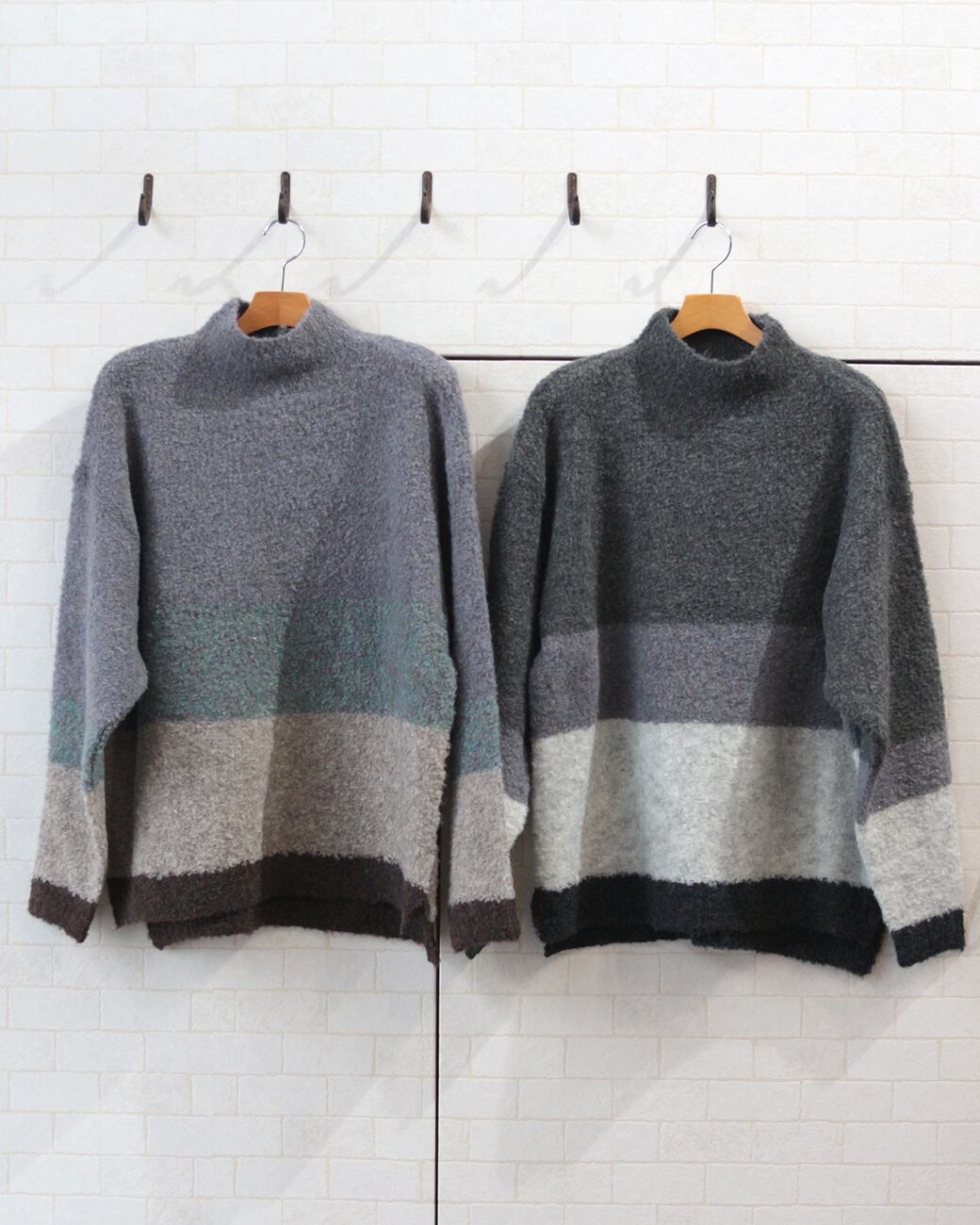 【ループヤーン ハイネックボーダーニット】